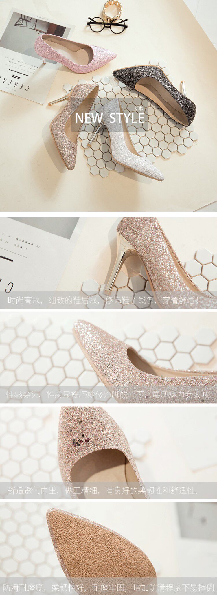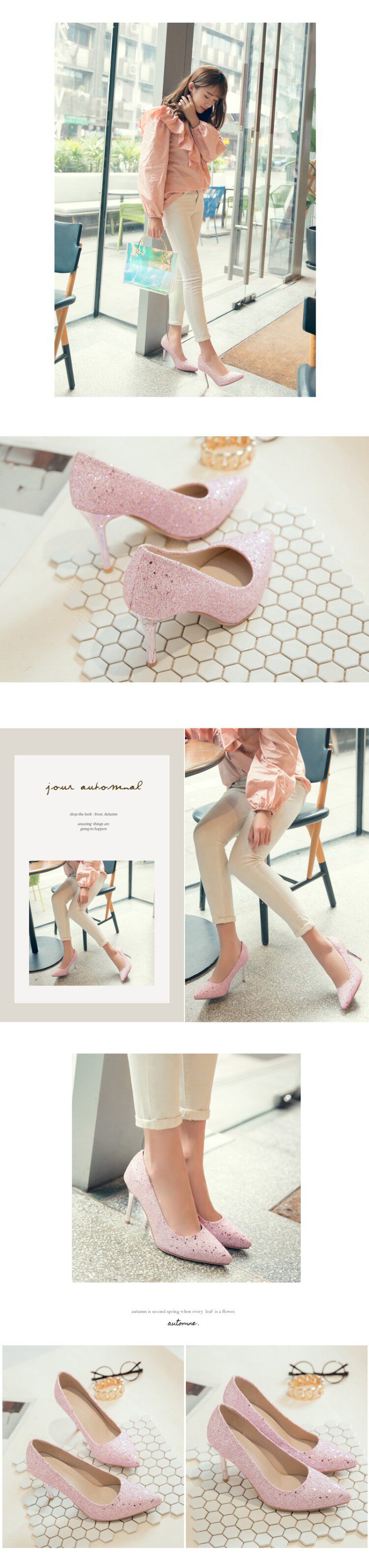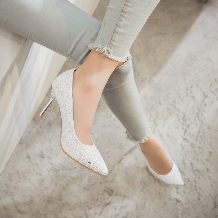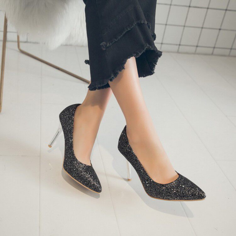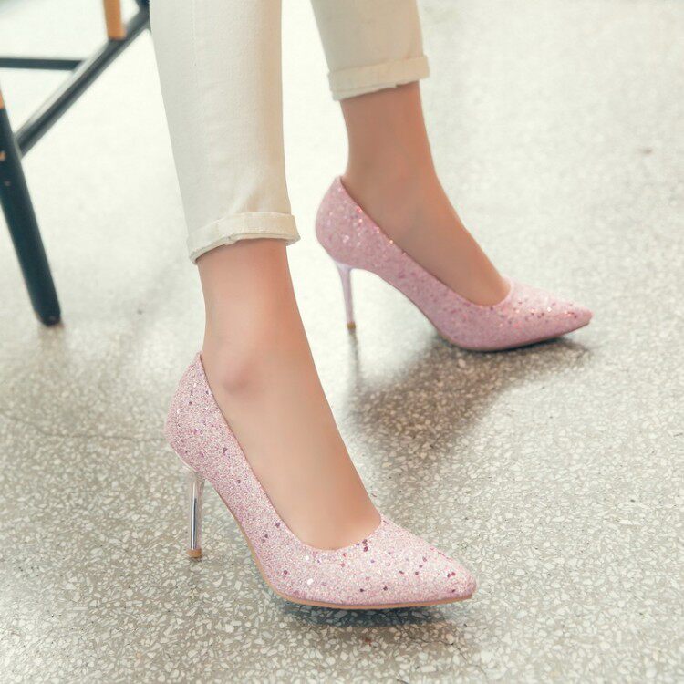 Сексуальные блестки заостренные высокие каблуки Большой размер 44 45 46 47 48 розовый высокий каблук Shi Sequint