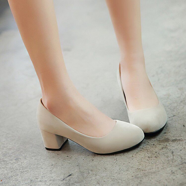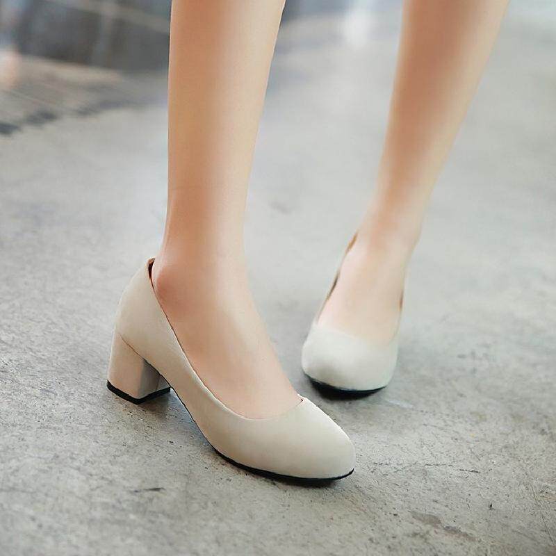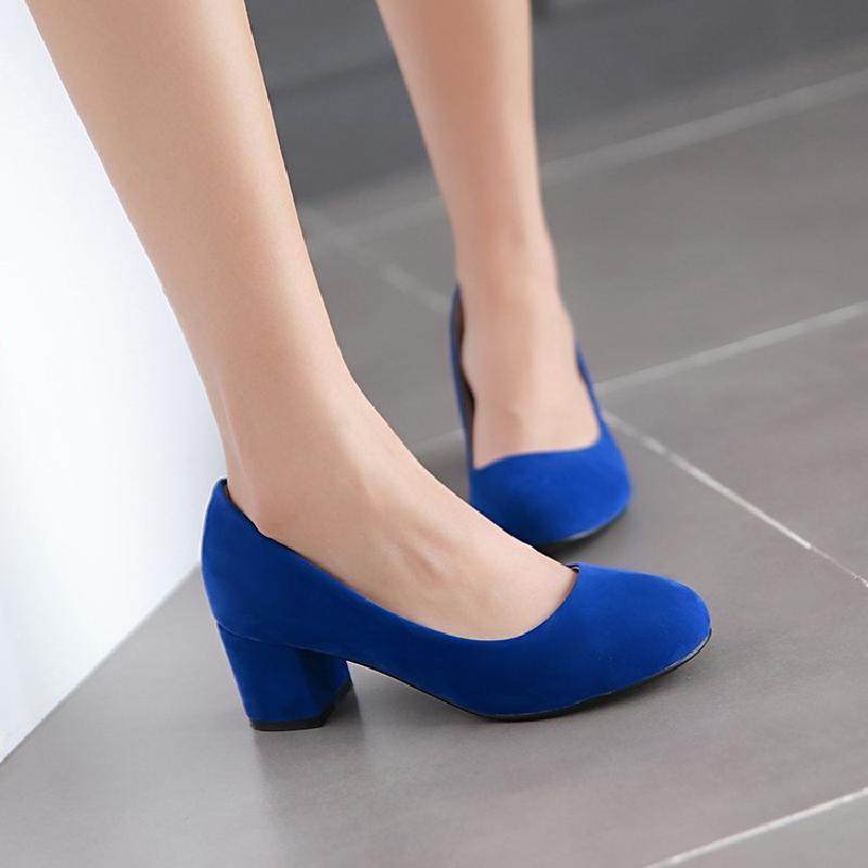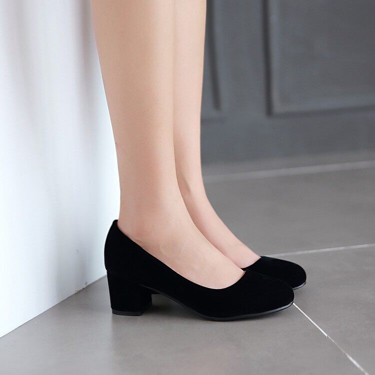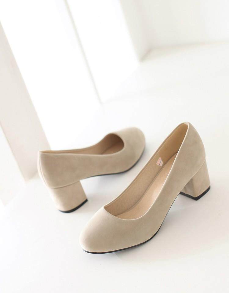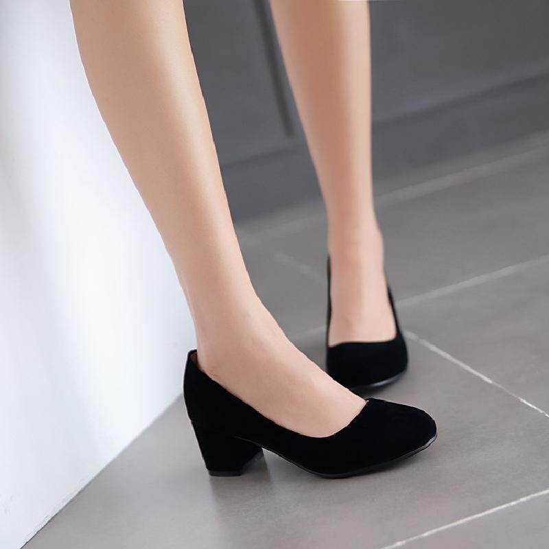 Осенние элегантные туфли на высоком каблуке в корейском стиле с круглым носком, матовая профессиональная рабочая женская обувь на толстом каблуке, размер