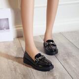 Весна Новая низколетная маленькая кожаная обувь британская женская обувь Женская туфли плоская патентная кожа