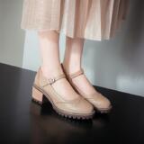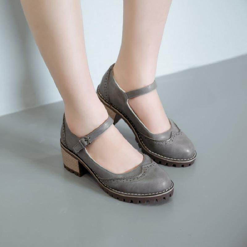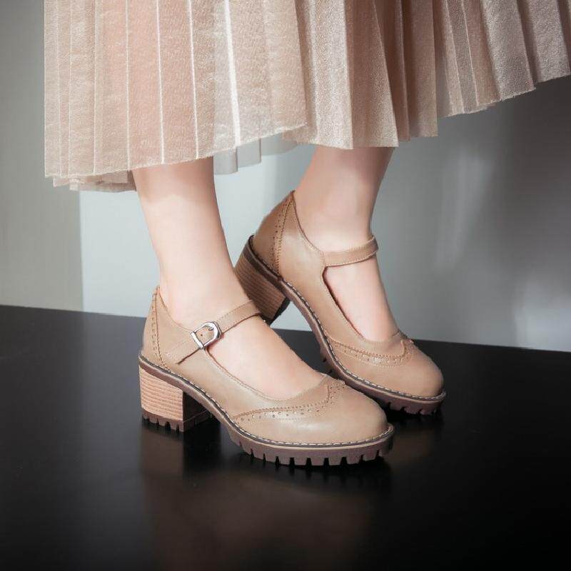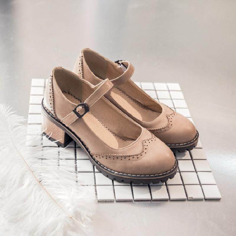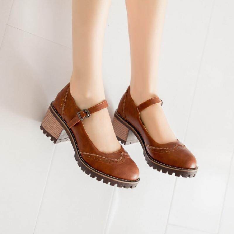 Британская ретро -литературная мода грубая пятка неглубокая женская обувь весна и осень Новое Слово -пряжка, одиночные туфли среднего каблука