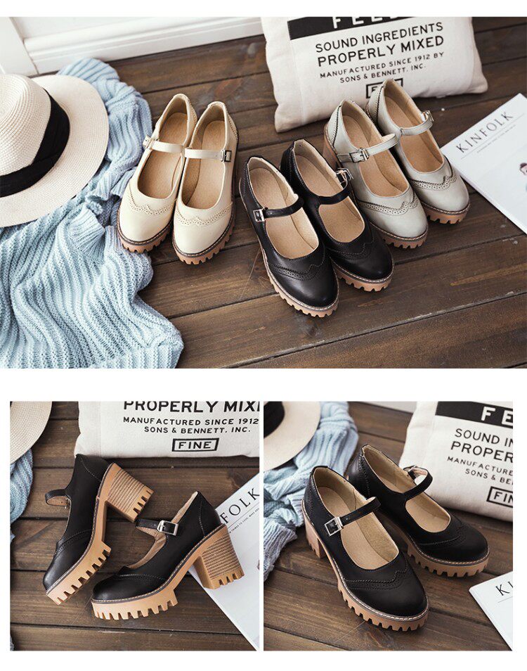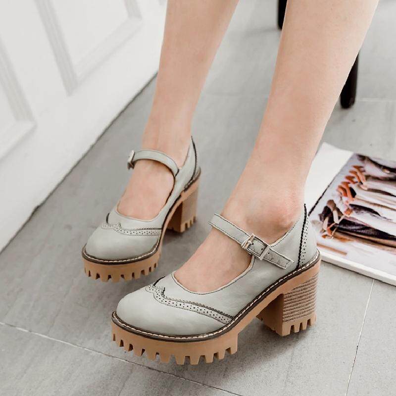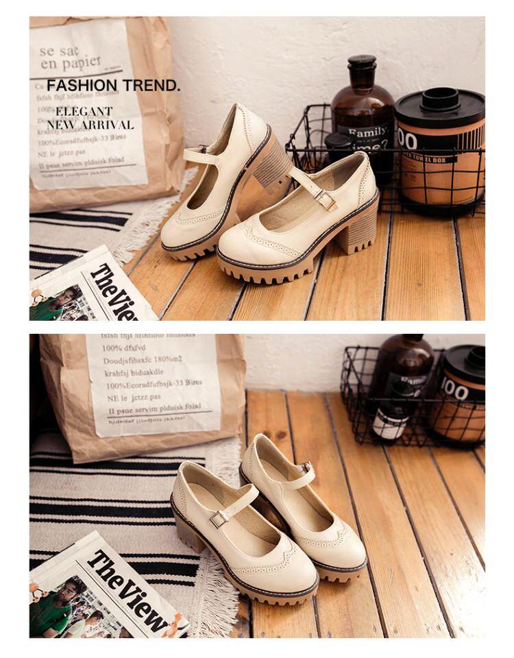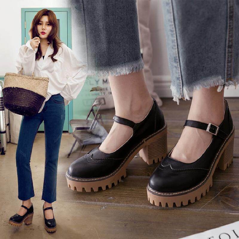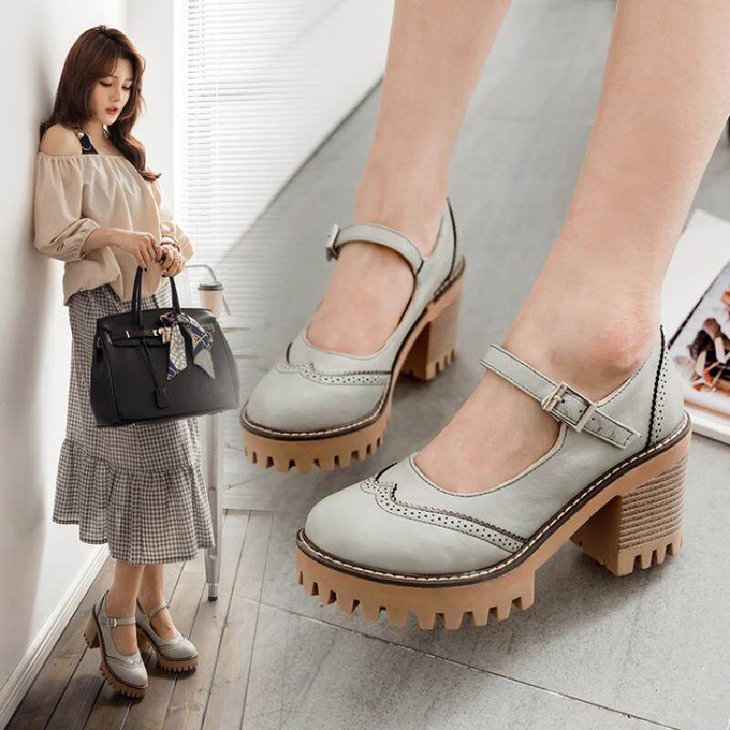 Британская ретро древняя резьба с густой нижней платформой густые каблуки женской обуви весна и осенние колледжа пряжка дикие высокие каблуки одиночные туфли