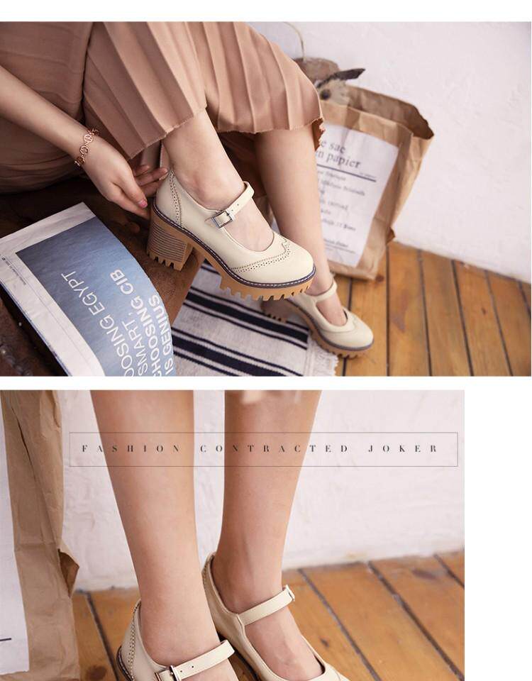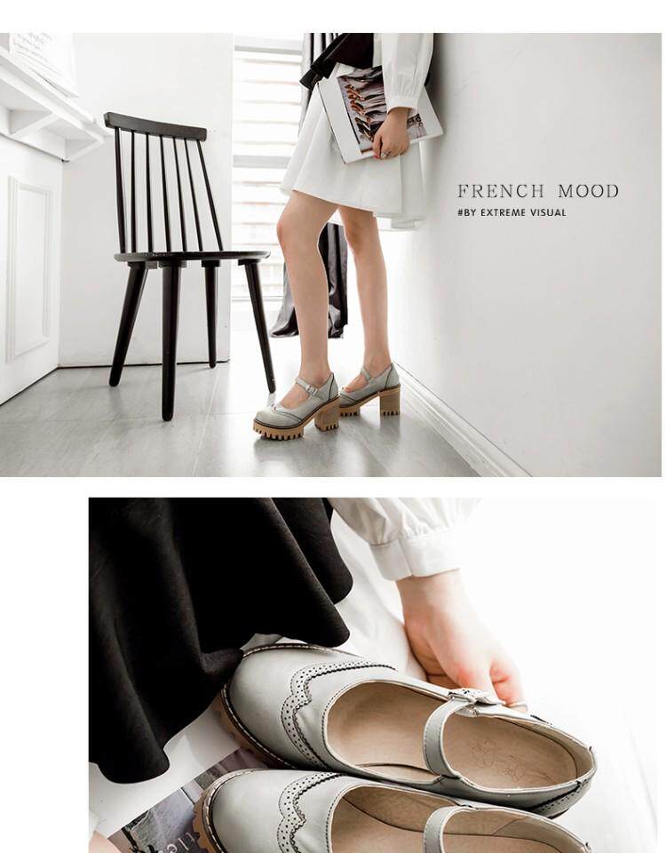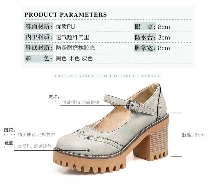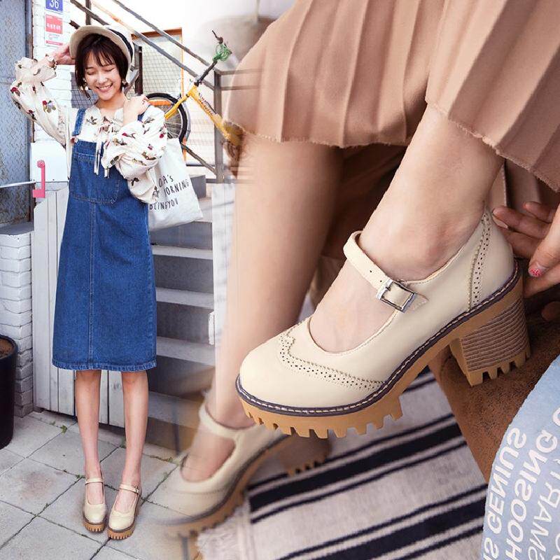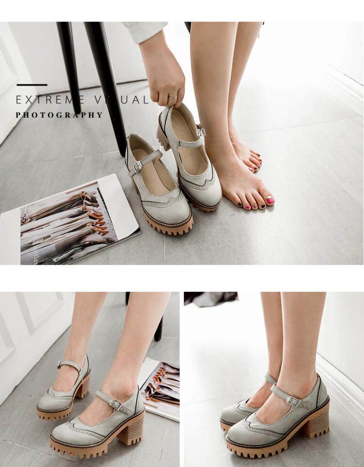 Британская ретро древняя резьба с густой нижней платформой густые каблуки женской обуви весна и осенние колледжа пряжка дикие высокие каблуки одиночные туфли