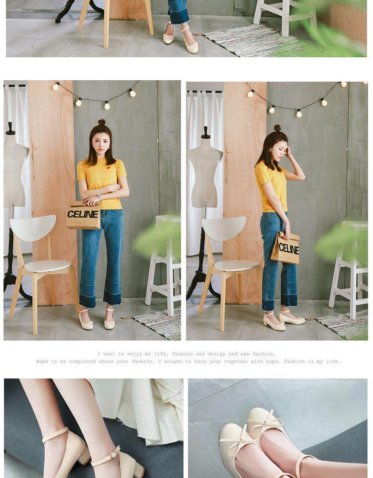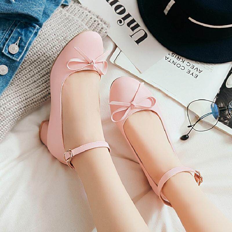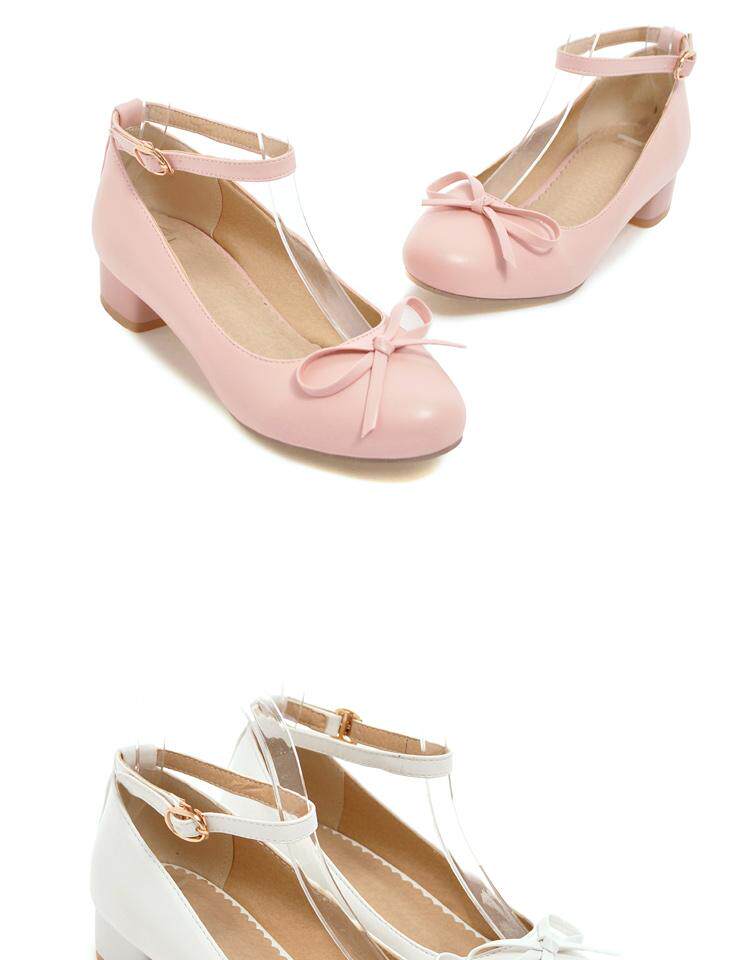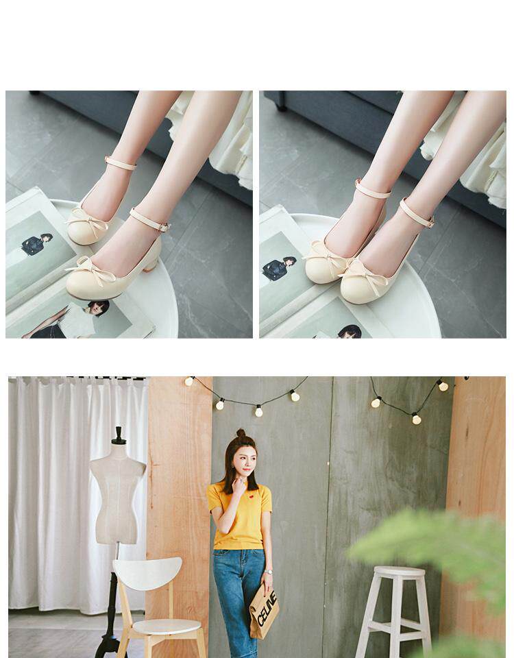 Весенне-осенние женские кожаные туфли на низком каблуке с одной линией и пряжкой в японском и корейском стиле с милым бантом