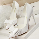 BIGTREE Весенняя белая обувь с заостренным носом с бантиком на высоком каблуке, в корейском стиле, 10см
