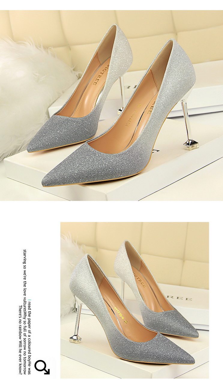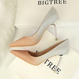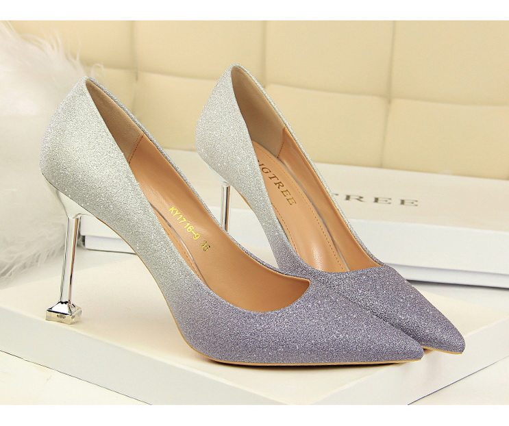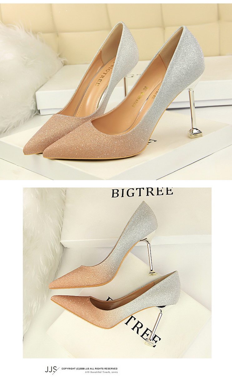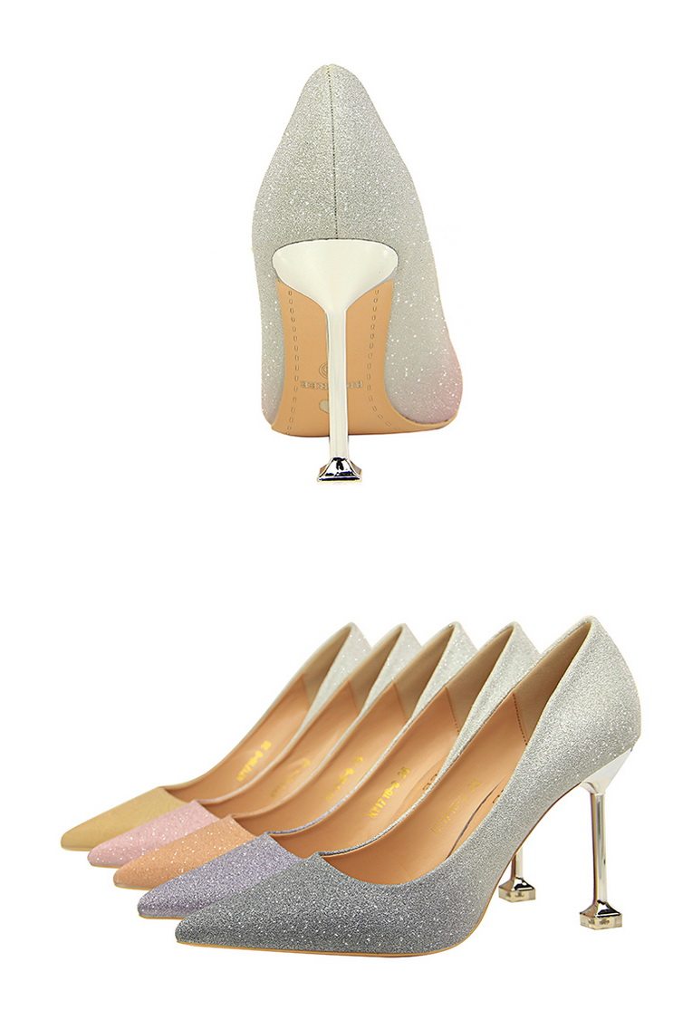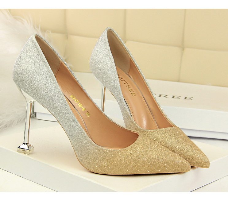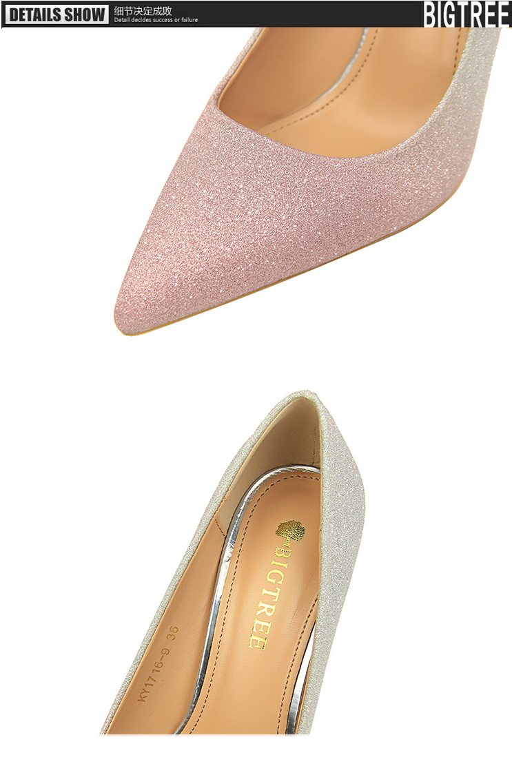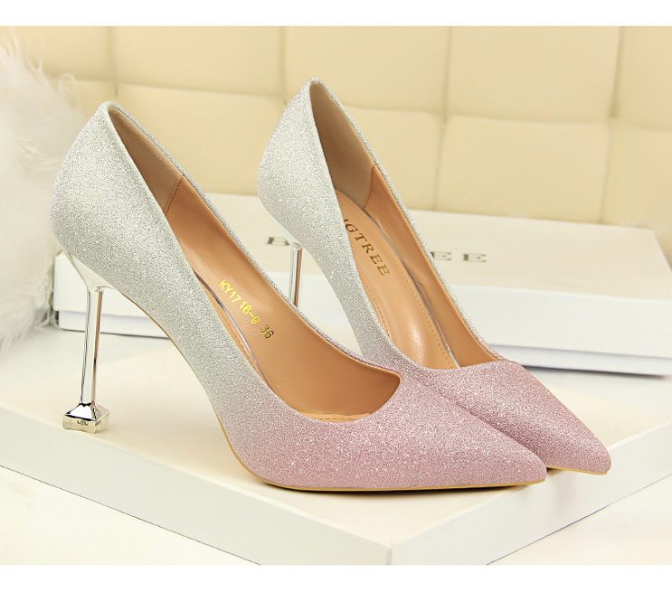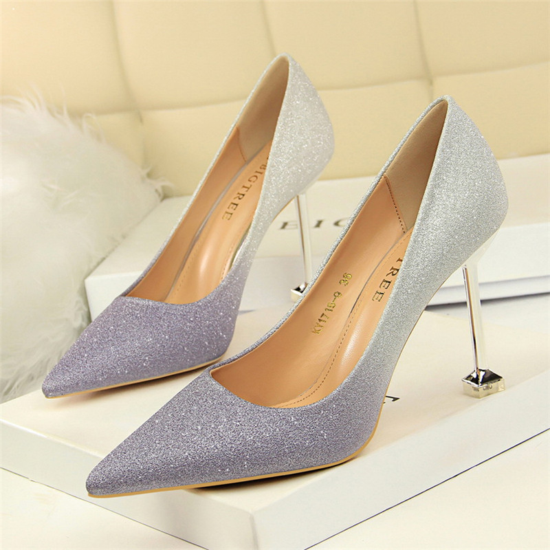 Популярные блестки для ногтей на высоком каблуке, обувь с заостренным носом, свадебные туфли, градиент