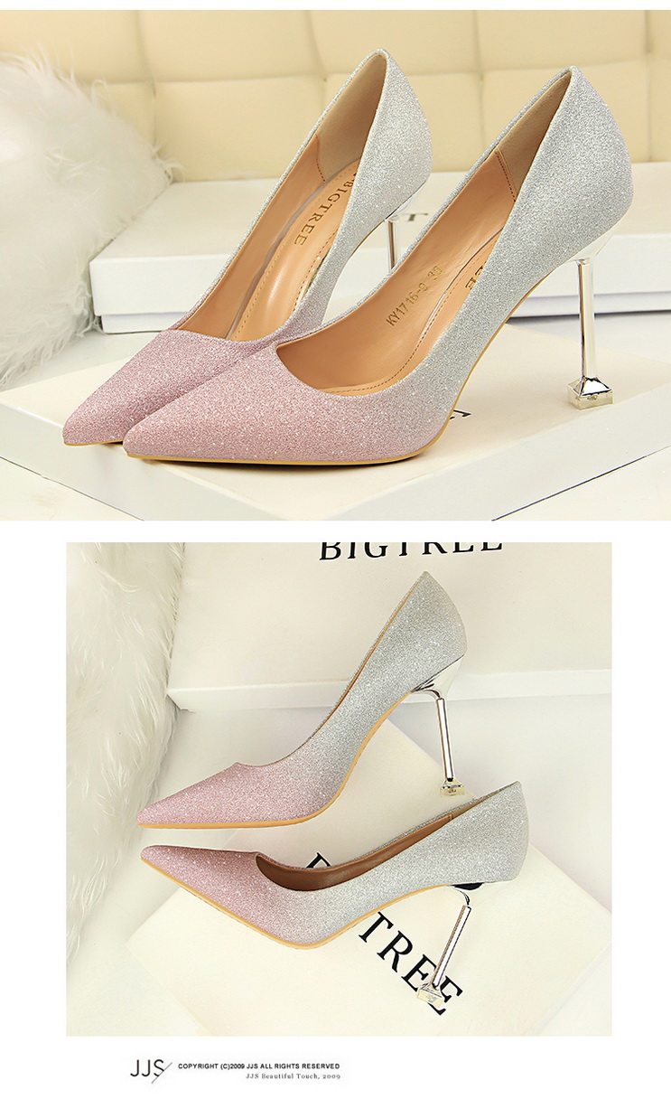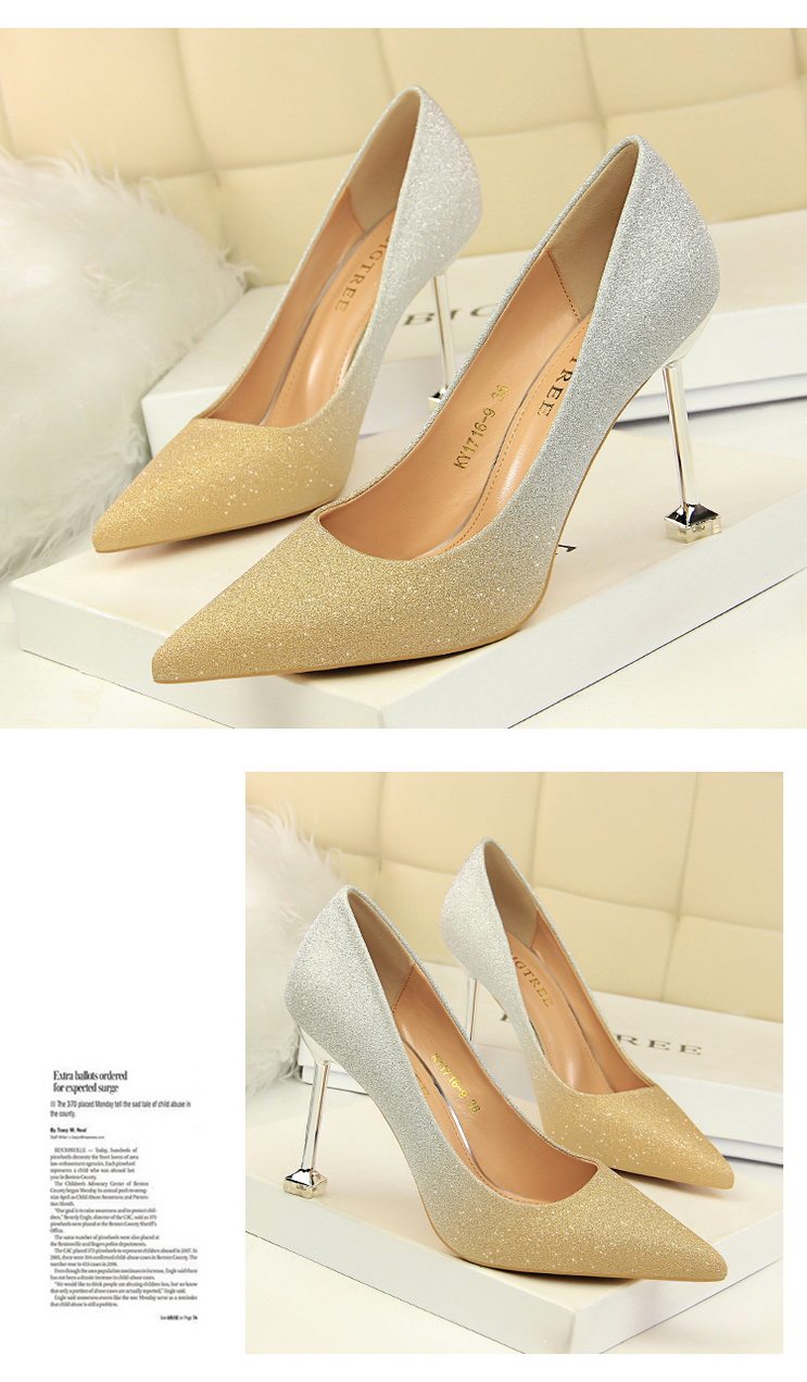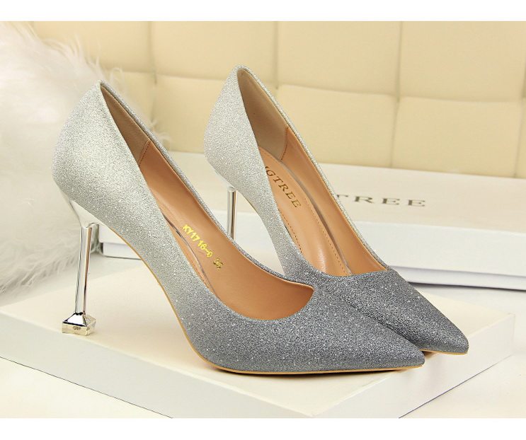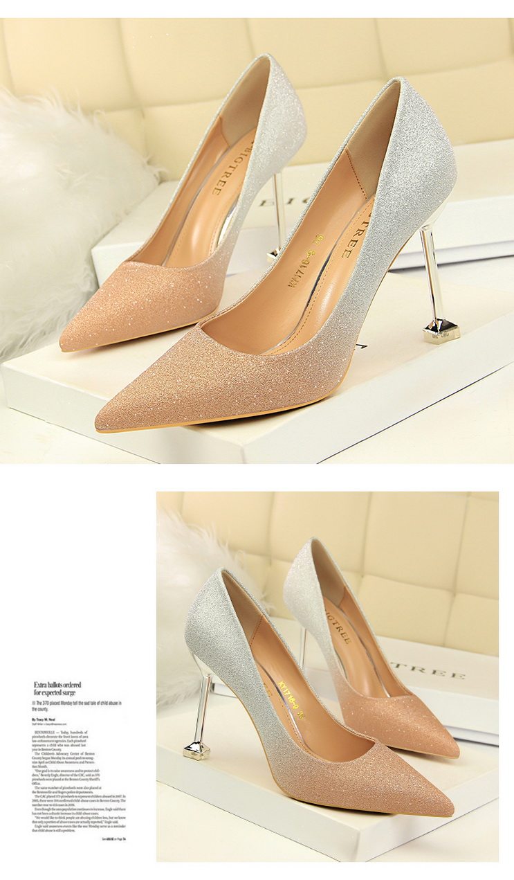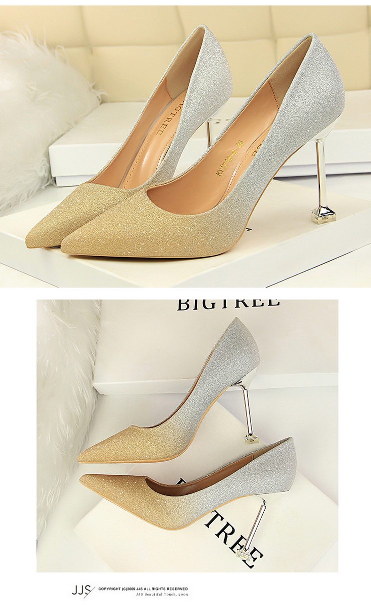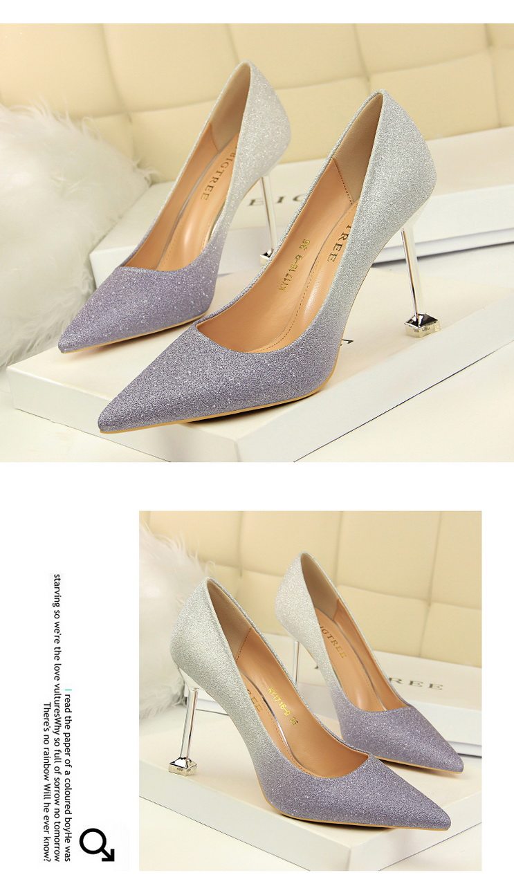 Популярные блестки для ногтей на высоком каблуке, обувь с заостренным носом, свадебные туфли, градиент