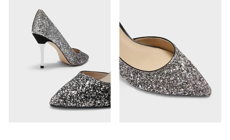 Женские туфли Charles and Keith Ck1- 60580071 Женские свадебные туфли на блестящем каблуке с острым носком и кристаллами для вечеринок
