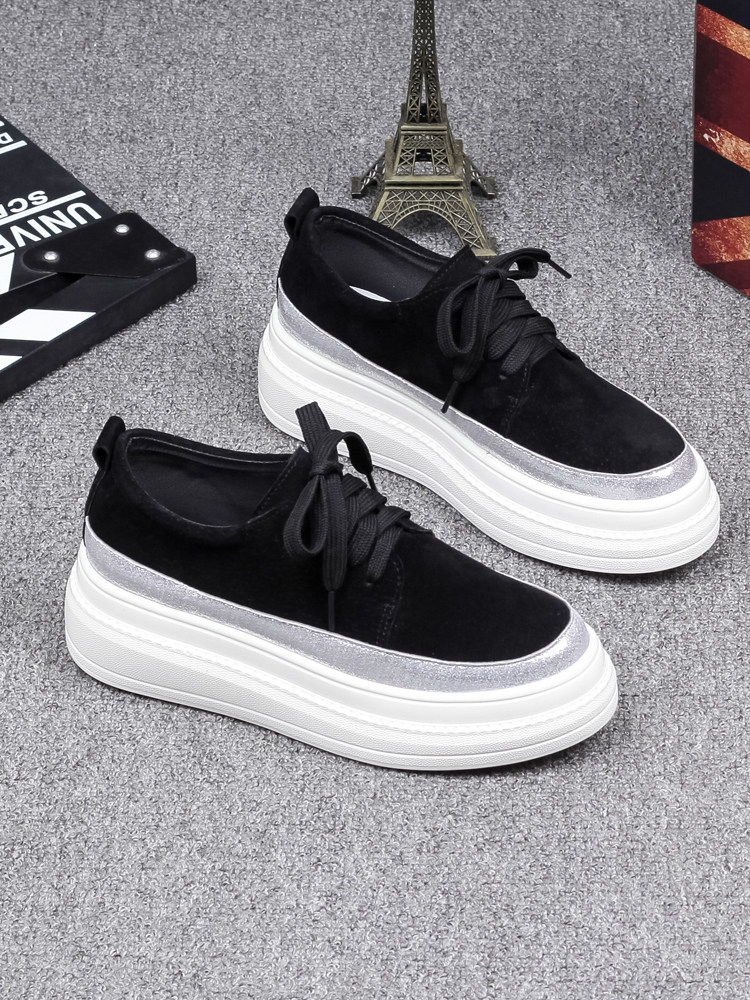 Демисезонная универсальная флисовая обувь на платформе, высокие лоферы для отдыха, коллекция 2023, в корейском стиле, из натуральной кожи