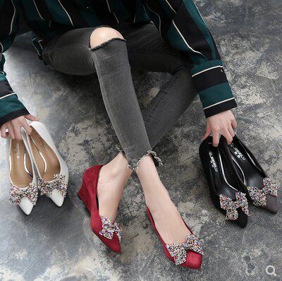 Весна 2022, новые темпераментные туфли-лодочки с острым носком и мягкой подошвой, украшенные стразами и бантом, универсальная обувь в корейском стиле в сказочном стиле