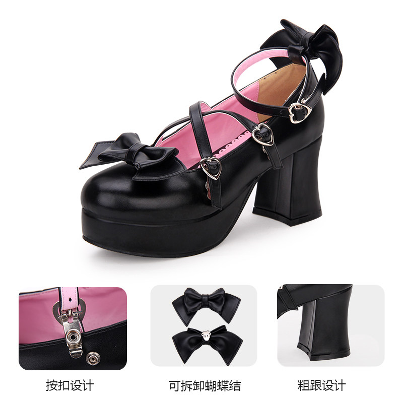 Осенние туфли в стиле Лолита Лолита, толстый каблук, круглый носок, бант, маленькие кожаные туфли на высоком каблуке, туфли принцессы, 9876