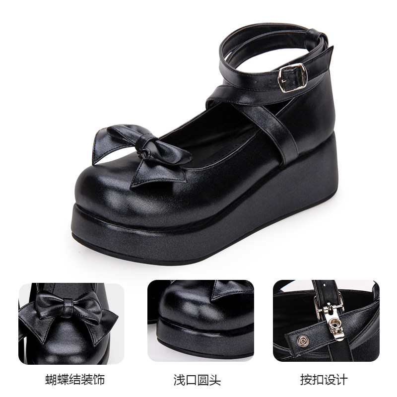 Новые весенне-осенние туфли в стиле Лолита, туфли принцессы в стиле Лолиты с круглым носком и бантом на толстой подошве и платформе, перламутровые туфли 9812