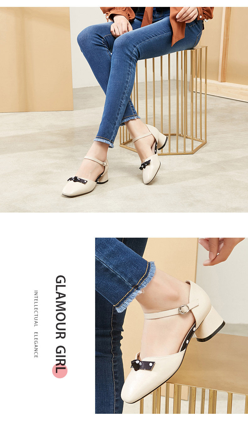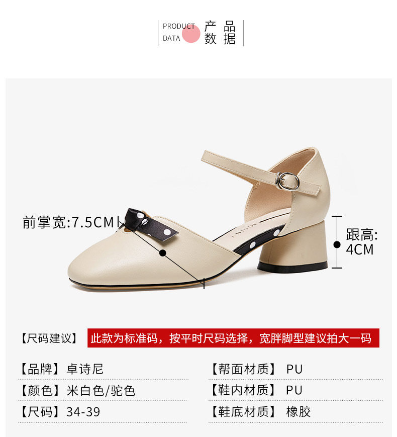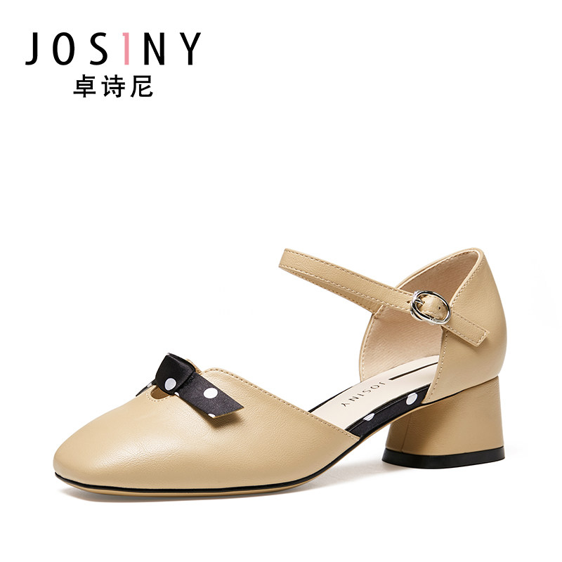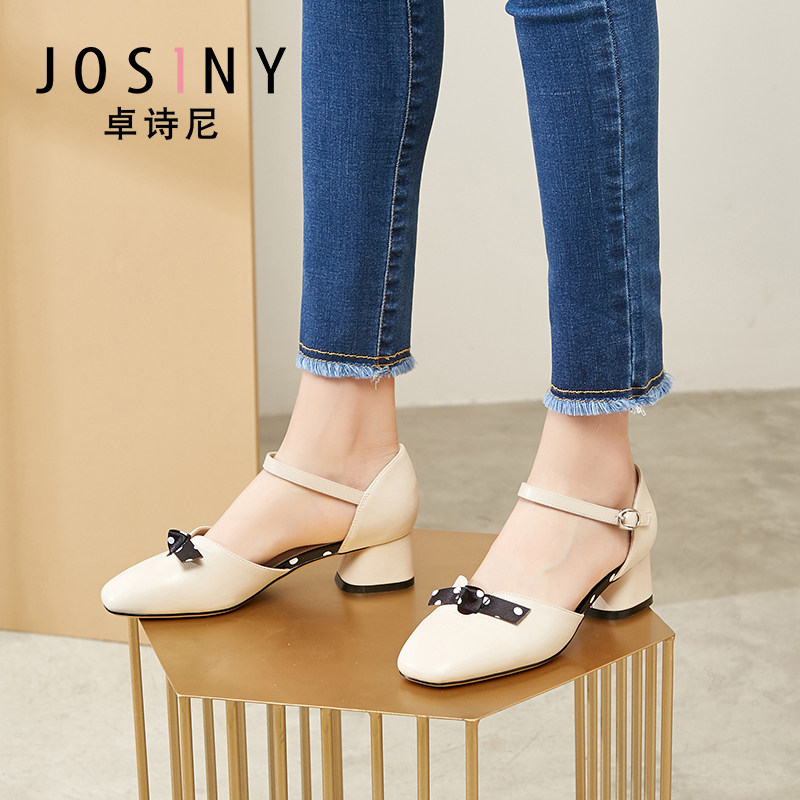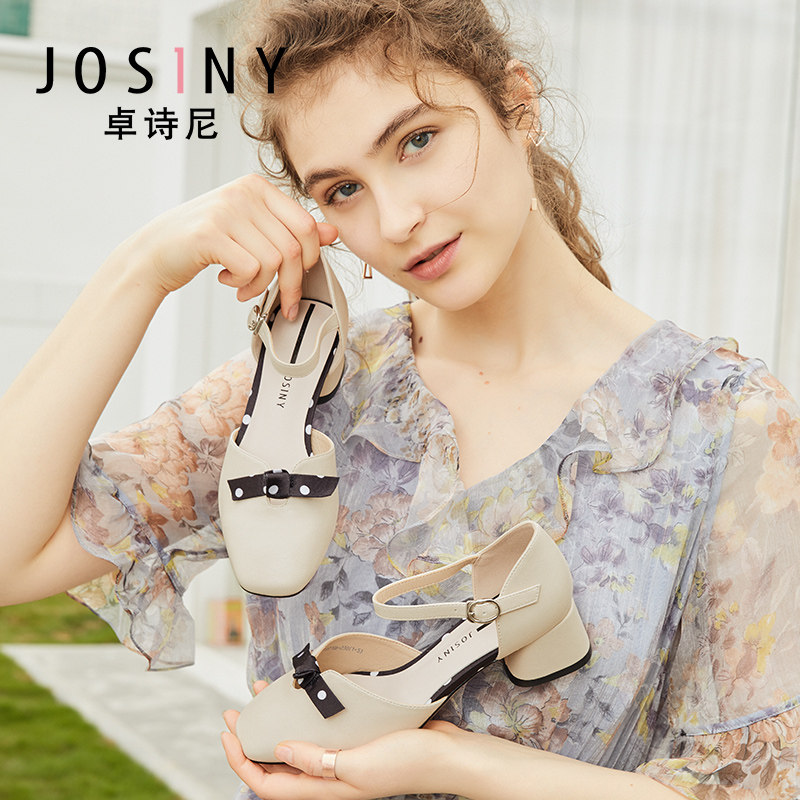 Zhuo Shini 2021 Весна и лето новые средние средние толстые каблуки с одним словом с пряжкой с универсальным и средним женским туфлями с сказочным стилем