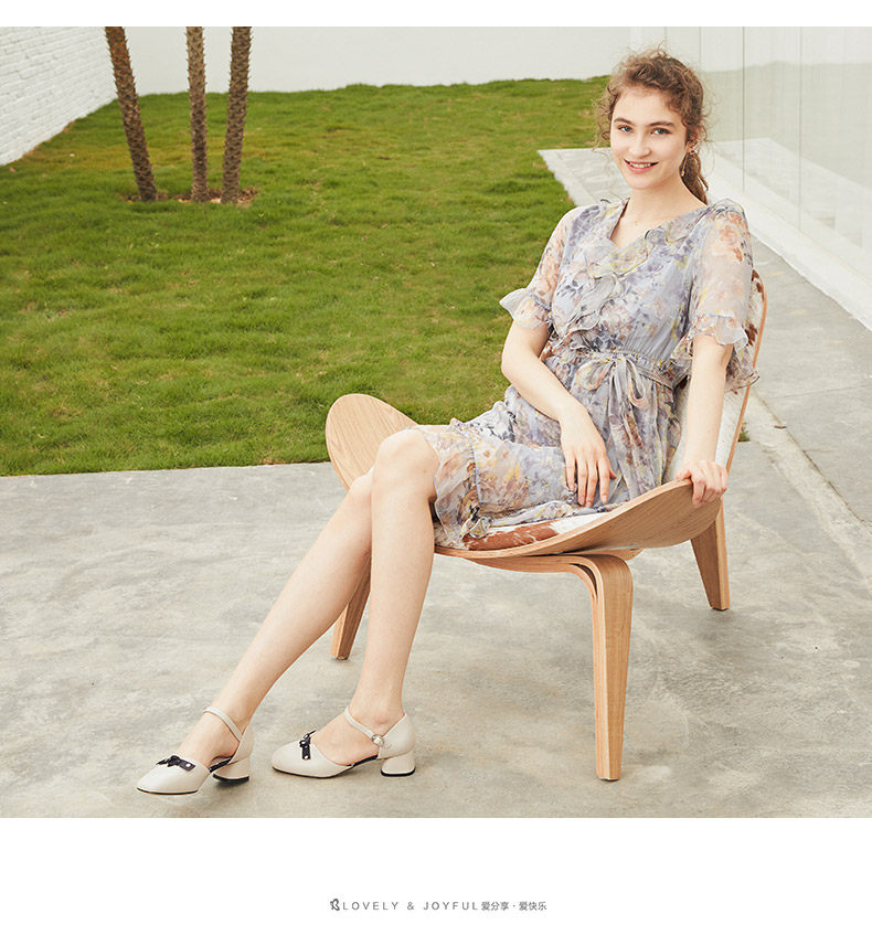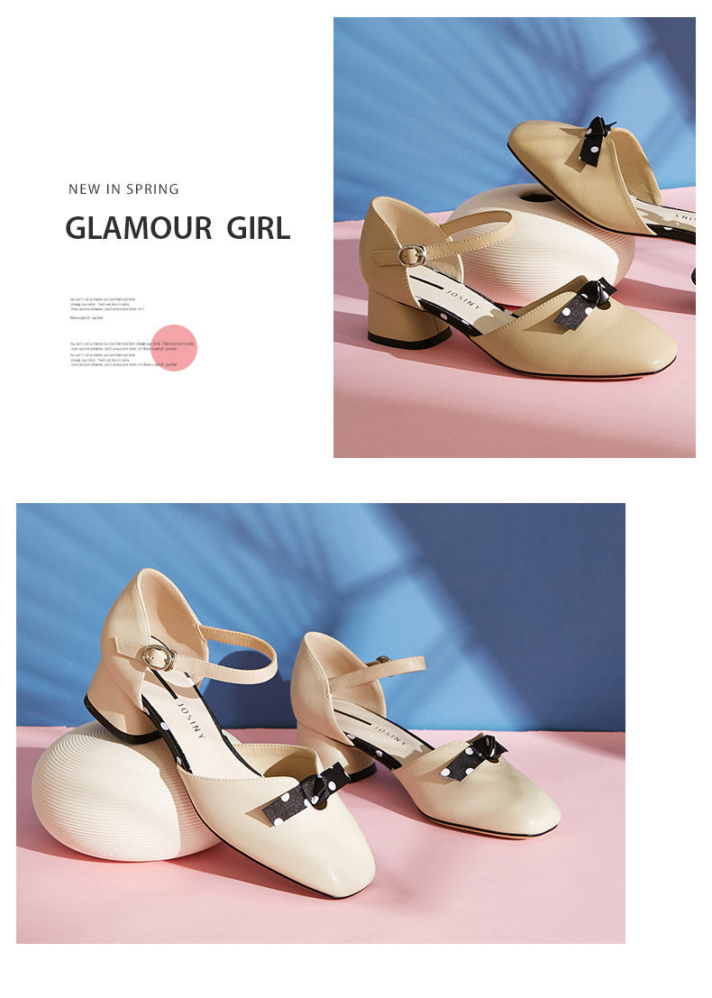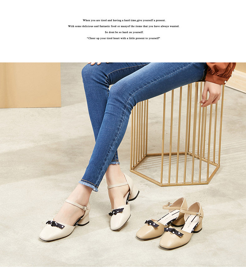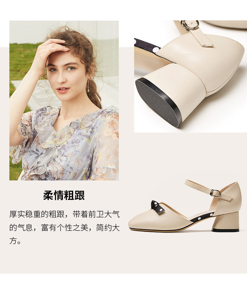 Zhuo Shini 2021 Весна и лето новые средние средние толстые каблуки с одним словом с пряжкой с универсальным и средним женским туфлями с сказочным стилем