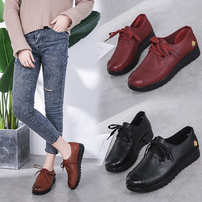 Туфли для мамы, повседневная кожаная обувь, новинка весны 2022 года, туфли на плоской подошве с мягкой подошвой для среднего и старшего возраста, удобные бабушкины туфли на шнуровке