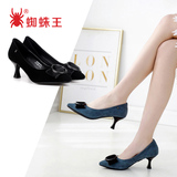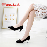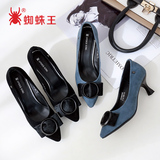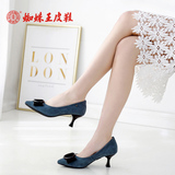 Универсальная обувь на высоком каблуке с заостренным носом с бантиком, из натуральной кожи