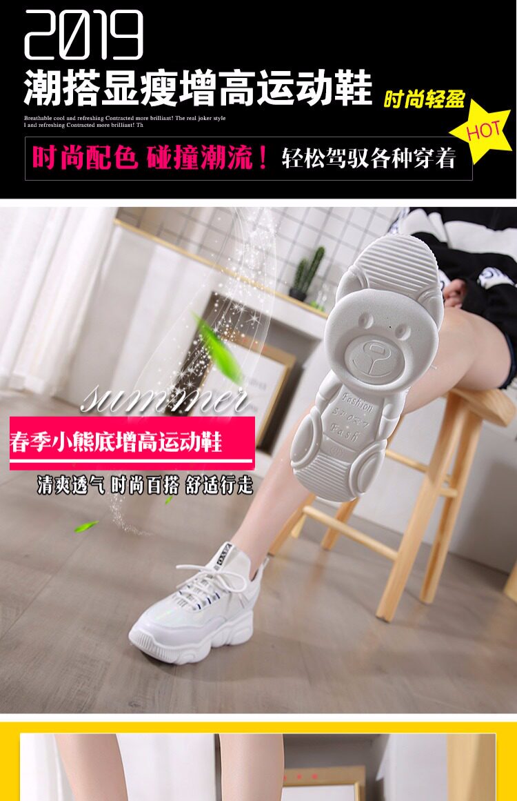 Универсальная белая обувь на платформе, спортивная спортивная обувь, высокая повседневная обувь, туфли, с медвежатами, в корейском стиле, 2019, тренд сезона