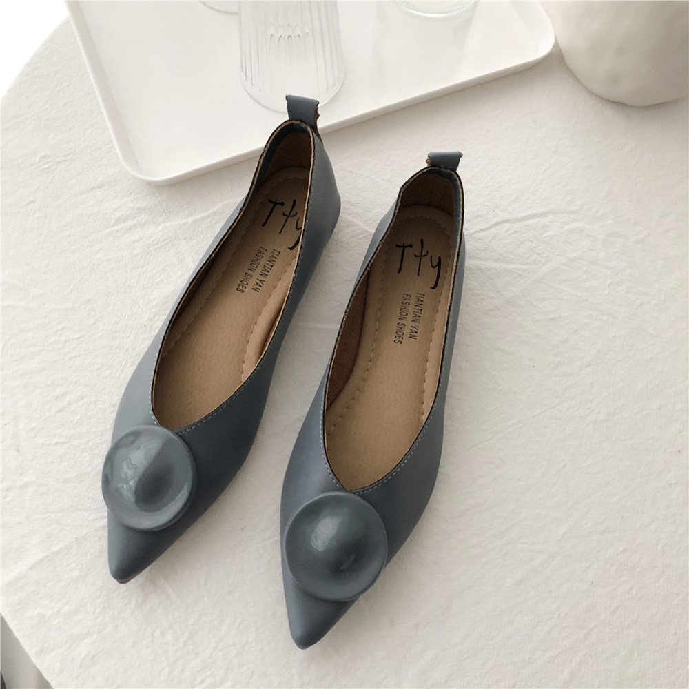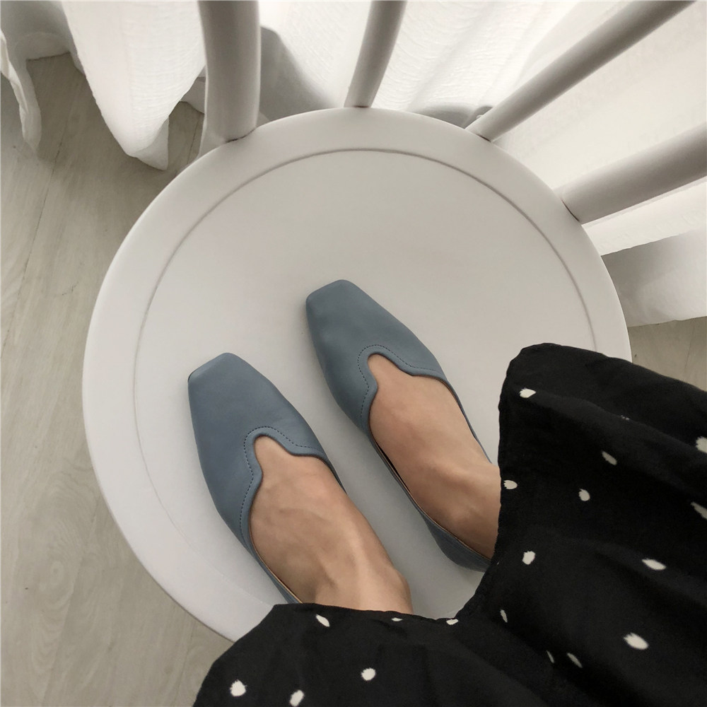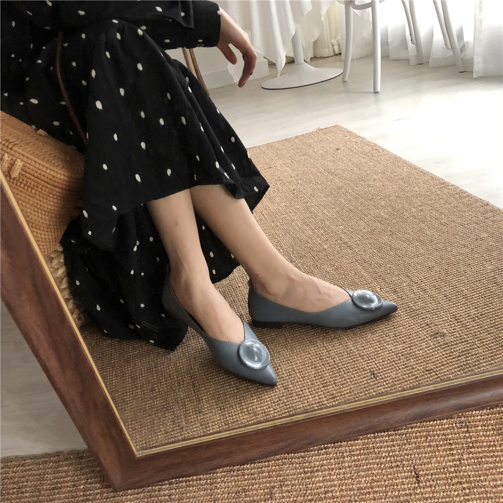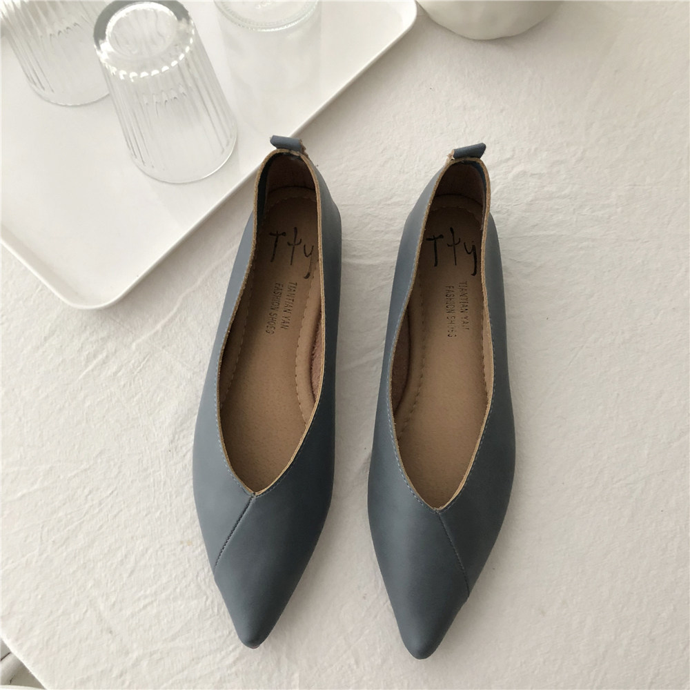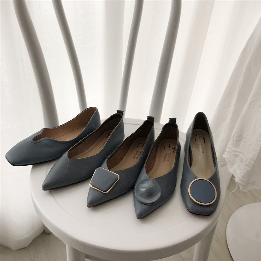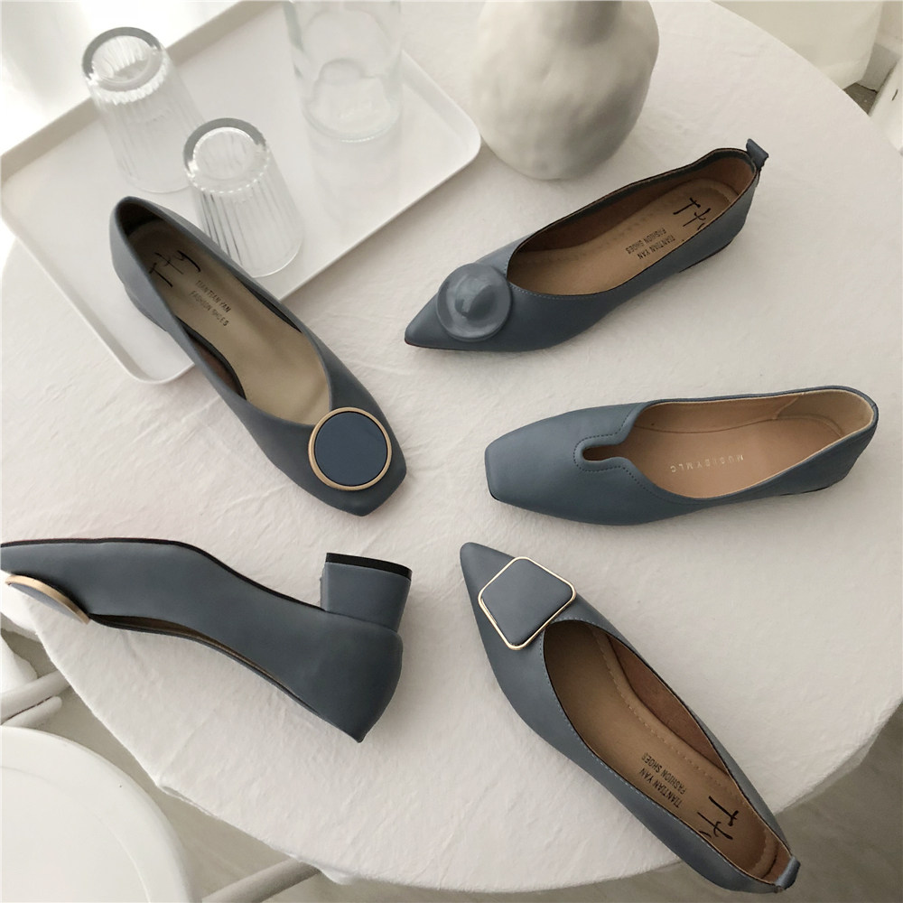 2019 Осень и Зимние женские туфли одиночные обувь ~ серия серии Morandi Haze Blue Pointed Head Flat Low Low -The Heald Syste -Thos