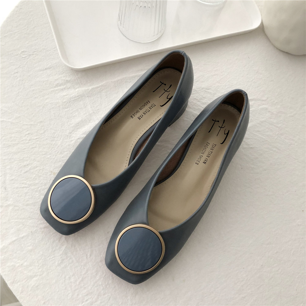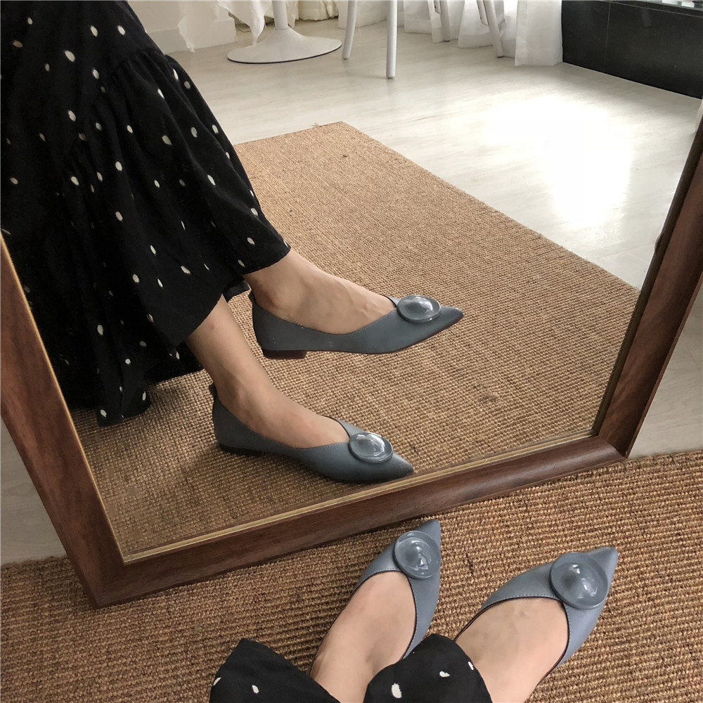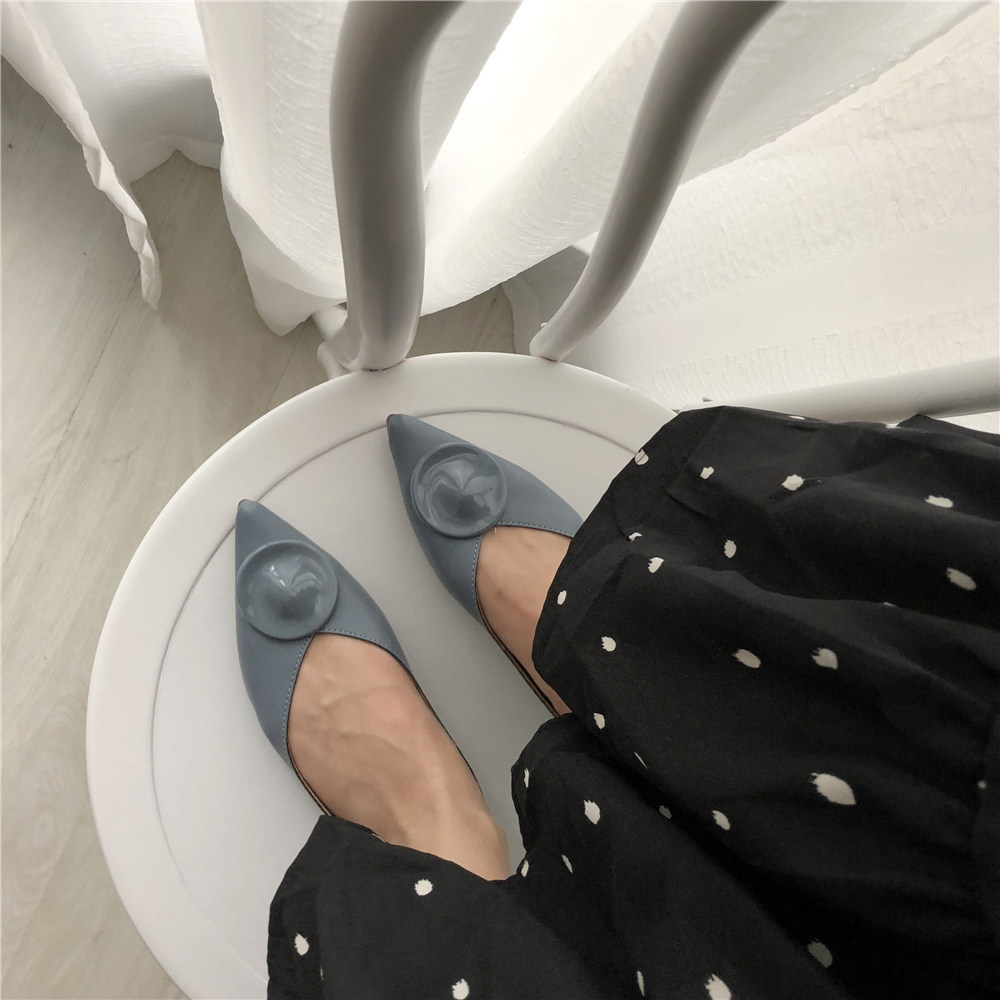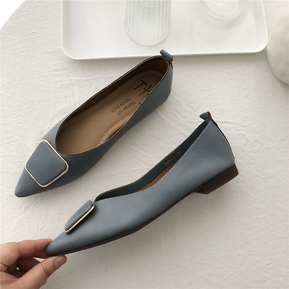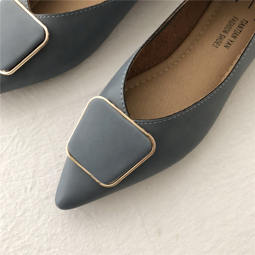 2019 Осень и Зимние женские туфли одиночные обувь ~ серия серии Morandi Haze Blue Pointed Head Flat Low Low -The Heald Syste -Thos