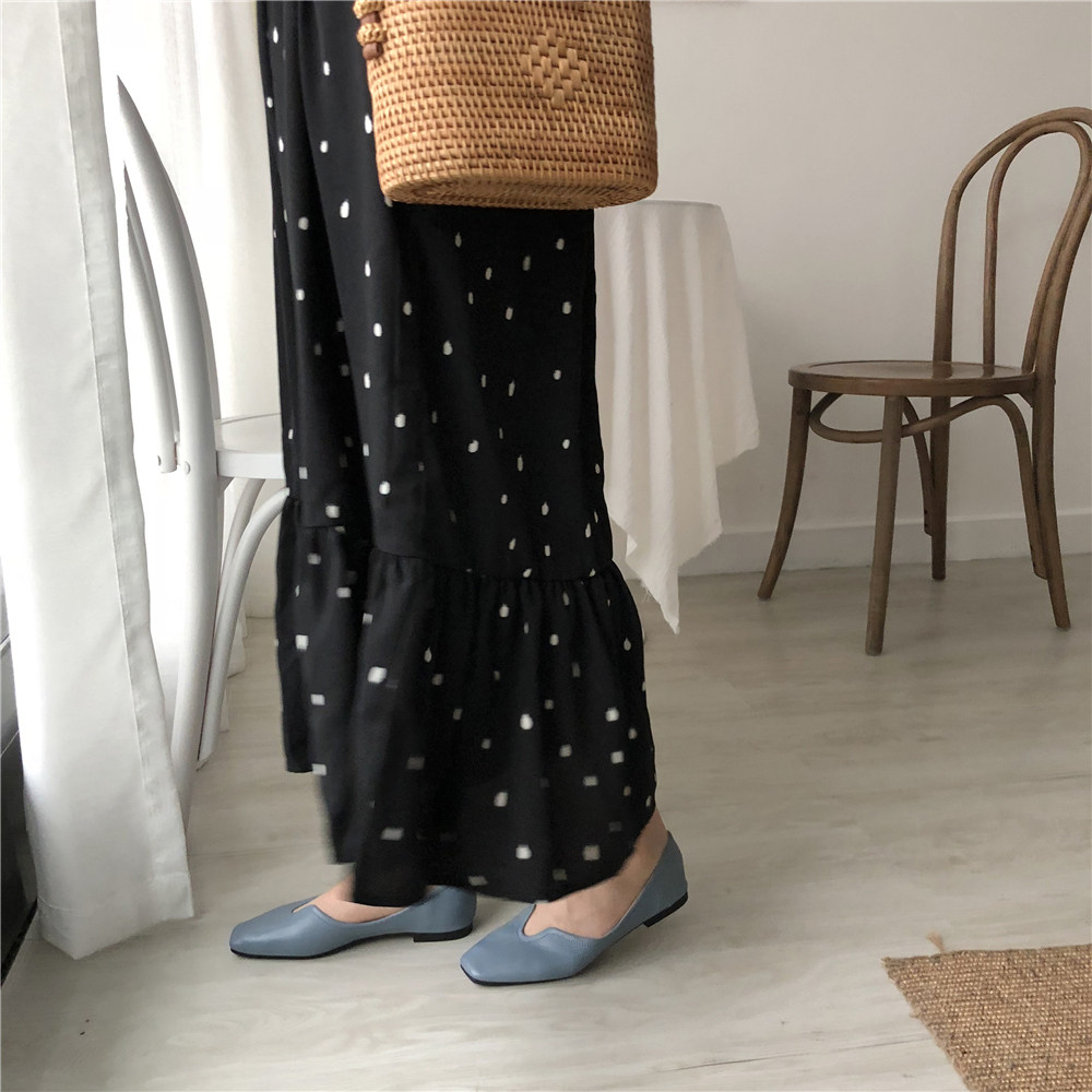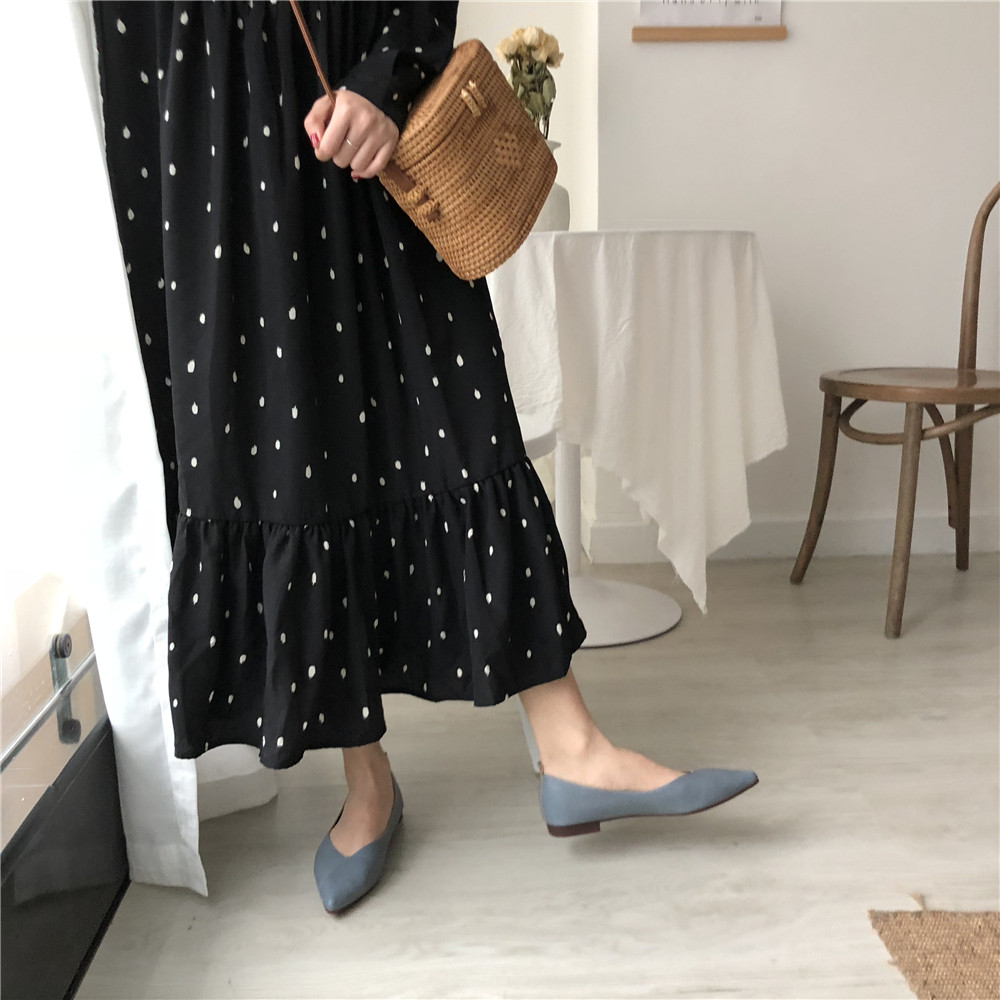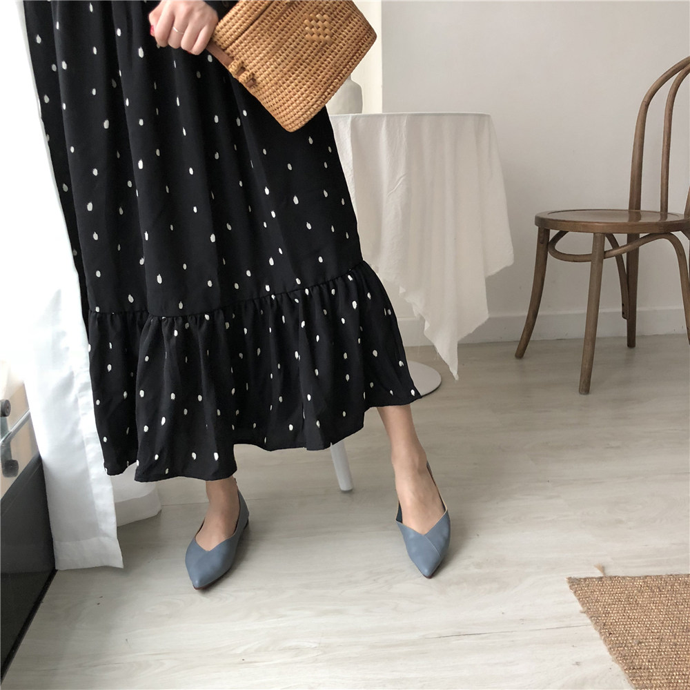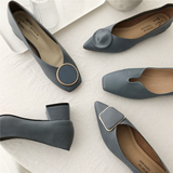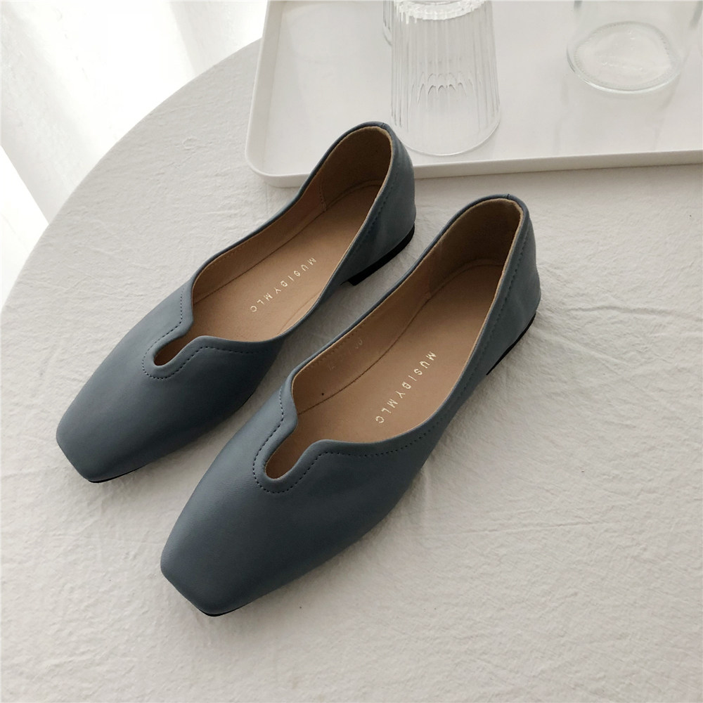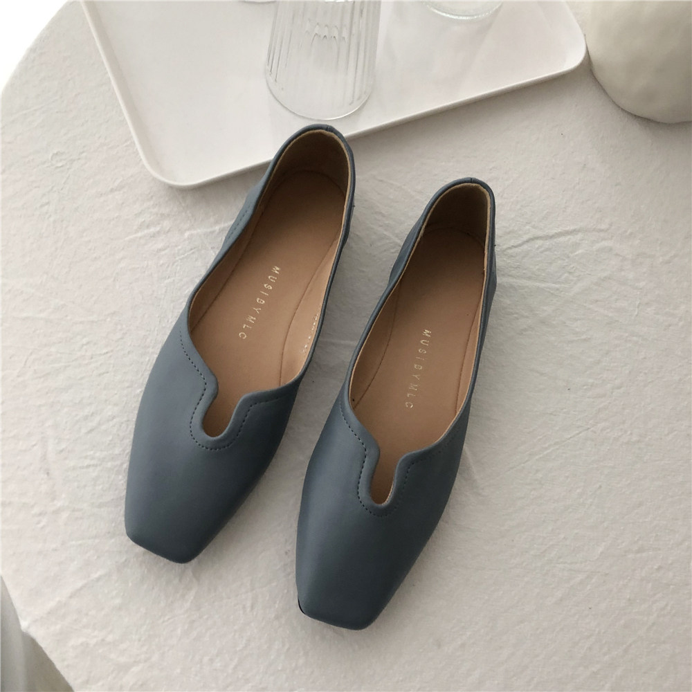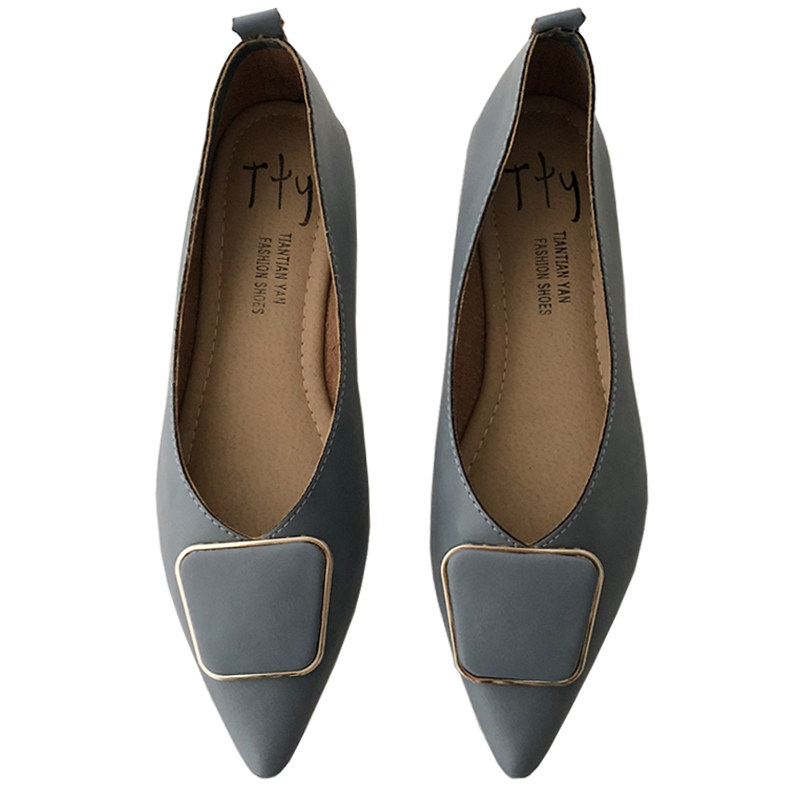 2019 Осень и Зимние женские туфли одиночные обувь ~ серия серии Morandi Haze Blue Pointed Head Flat Low Low -The Heald Syste -Thos