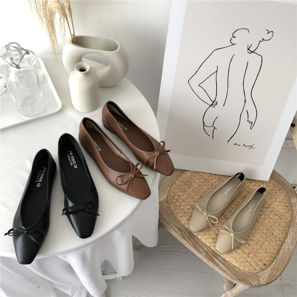 Туфли с бантиком, комфортные балетки, универсальные демисезонные полуботинки
