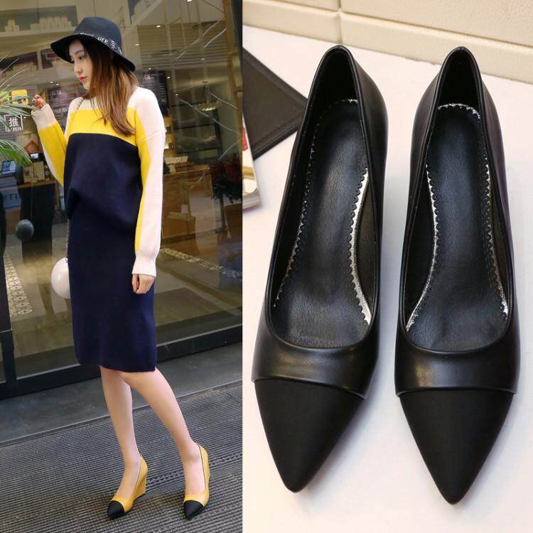 Корейская версия сплайсингового склона неряшливо -одиночка, заостренная и мелкая женская обувь с высокой высокой высокой высокой высокой весной и летними новыми женщинами Four Seasons Shoes