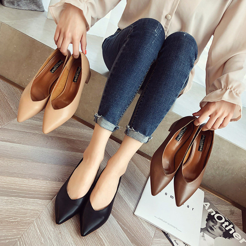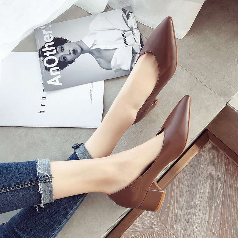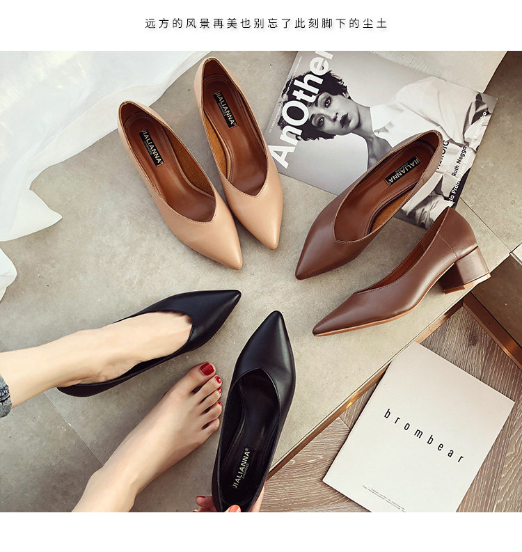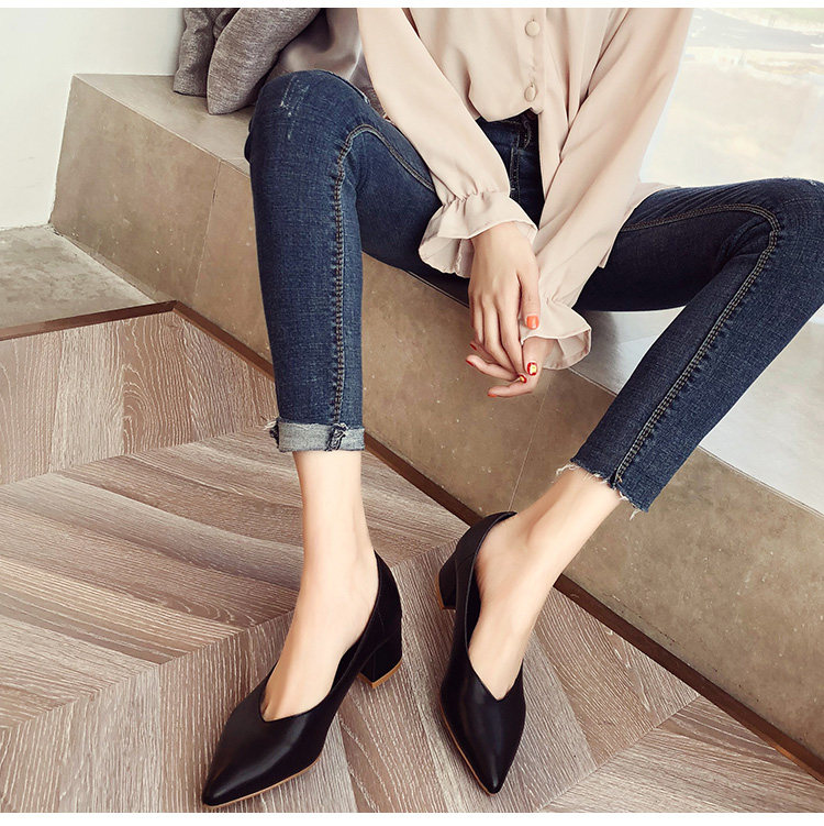 Рабочая черная обувь с заостренным носом на высоком каблуке