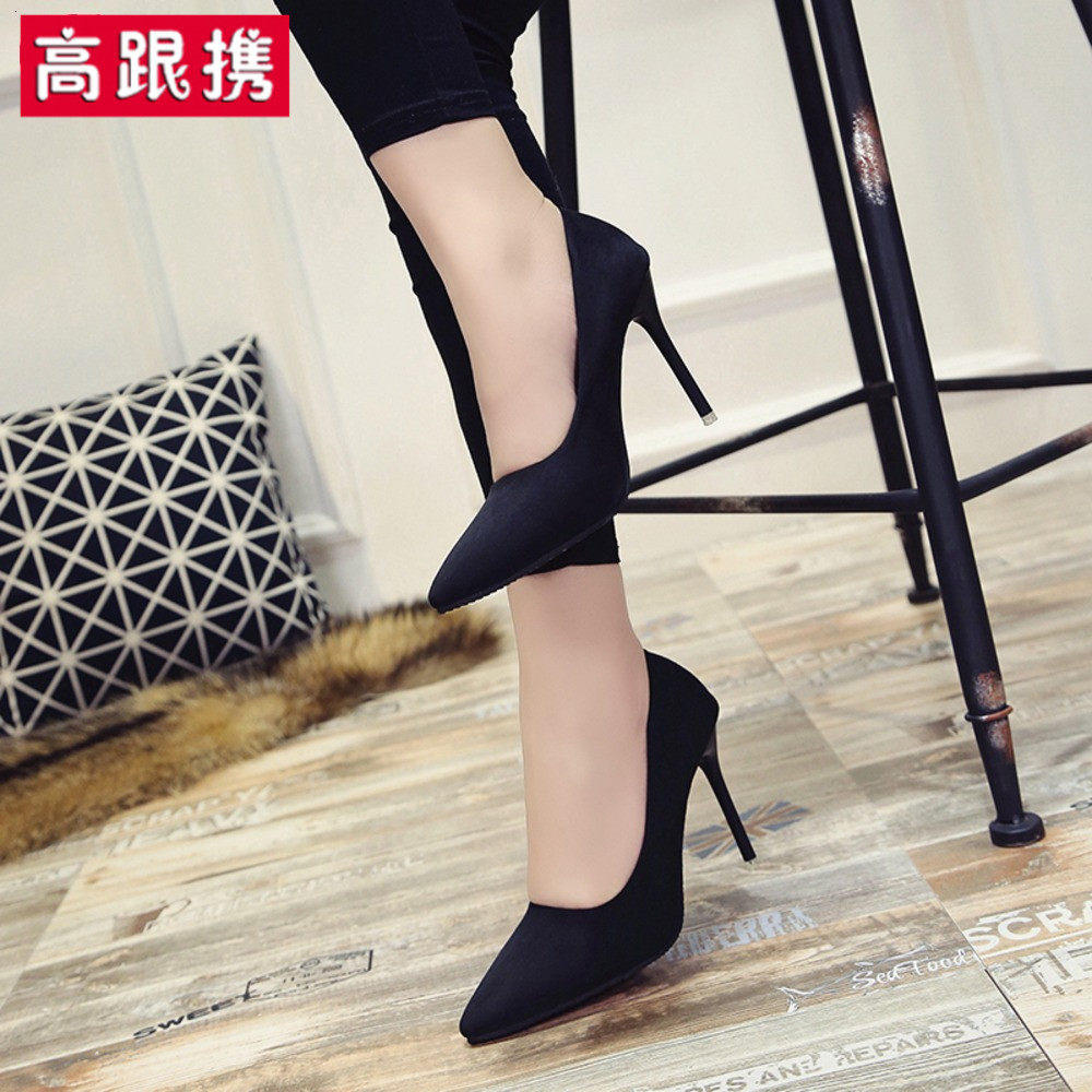 Черная весенняя универсальная сексуальная обувь на высоком каблуке с заостренным носом, 2019, тренд сезона, французский стиль