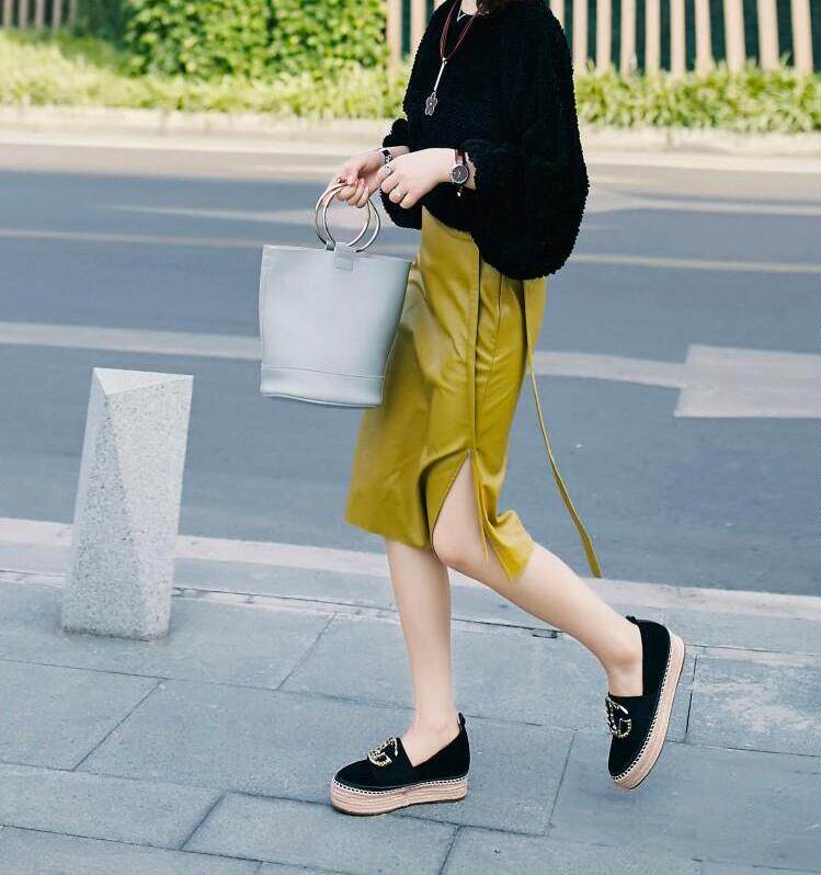 Невидимая внутренняя прибавка к росту 6 см, удобная, толстая подошва, водонепроницаемая платформа, модная двойная буква С, неглубокий горлышек, женские туфли Laika 6775k