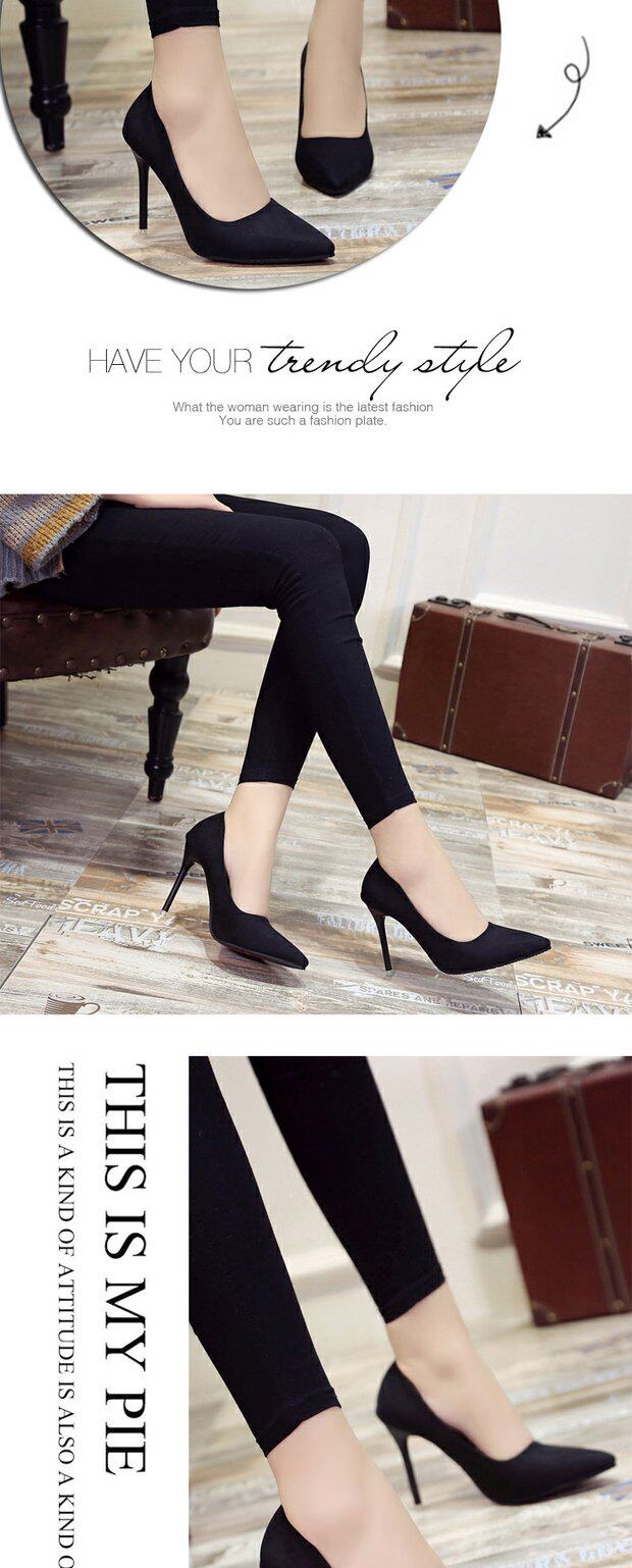 Черная универсальная рабочая обувь с заостренным носом на высоком каблуке, 2019, 10см