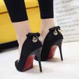 Нюдовая сексуальная черная обувь с заостренным носом на высоком каблуке, 2019, европейский стиль, 10см, осенняя