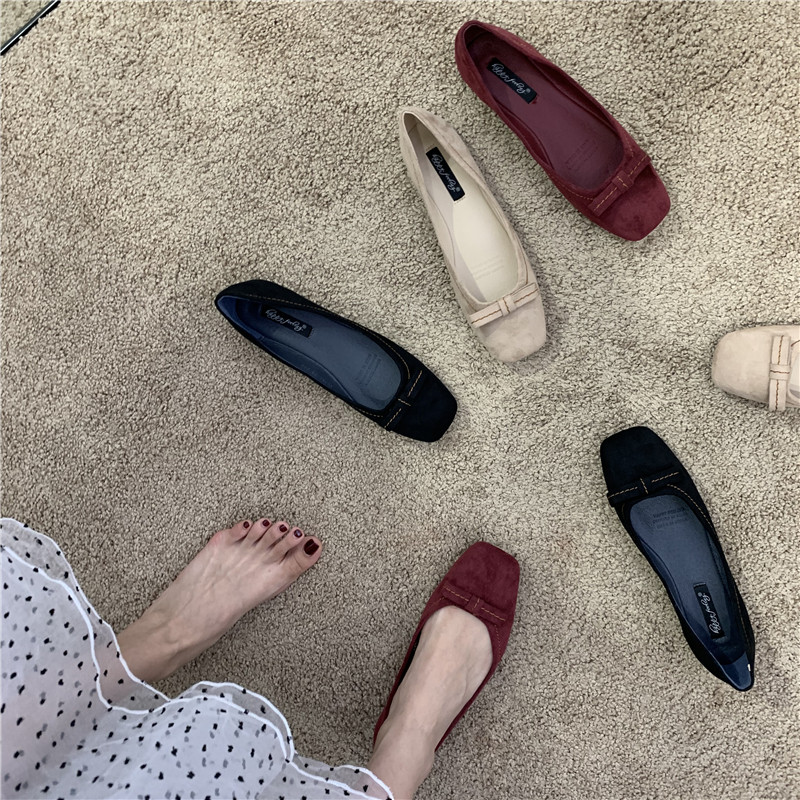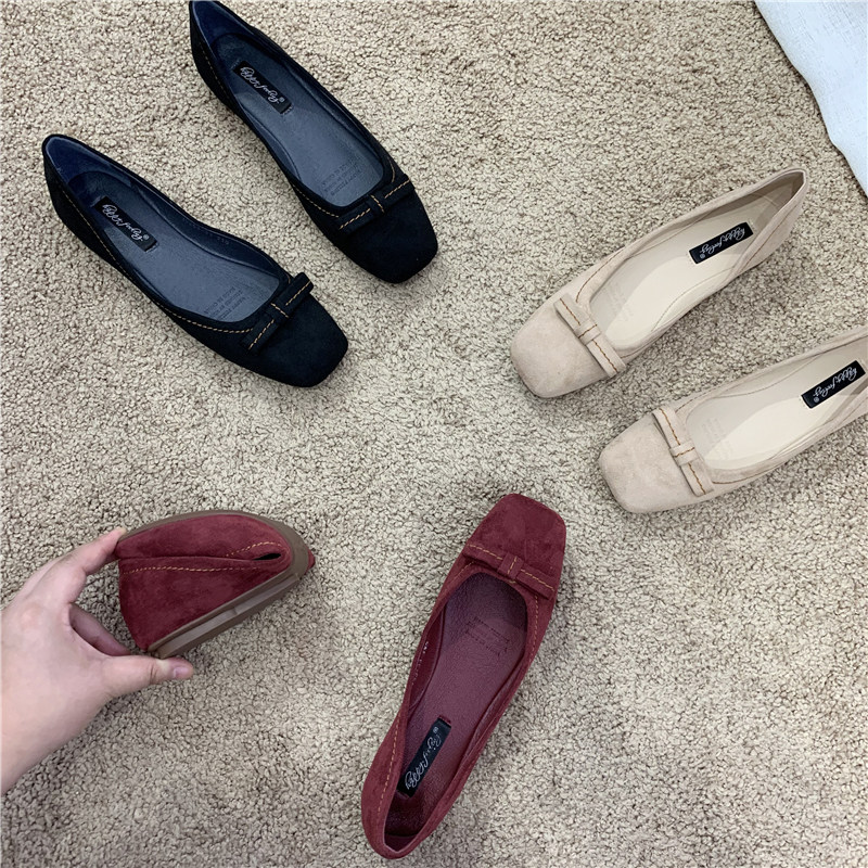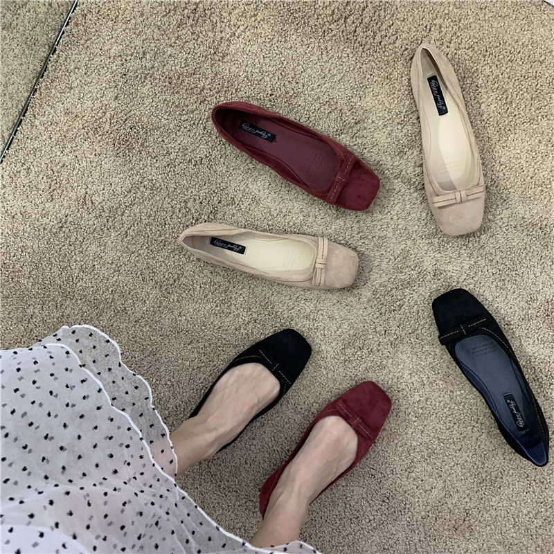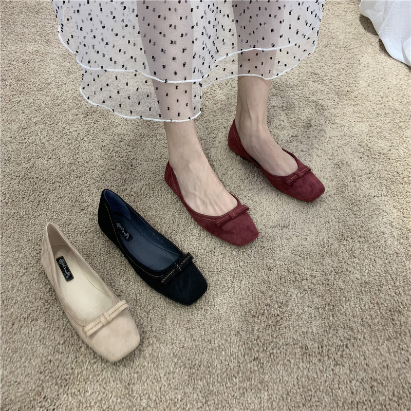 Плоская подошва демисезонная обувь, универсальные лоферы с низким вырезом с бантиком, в корейском стиле