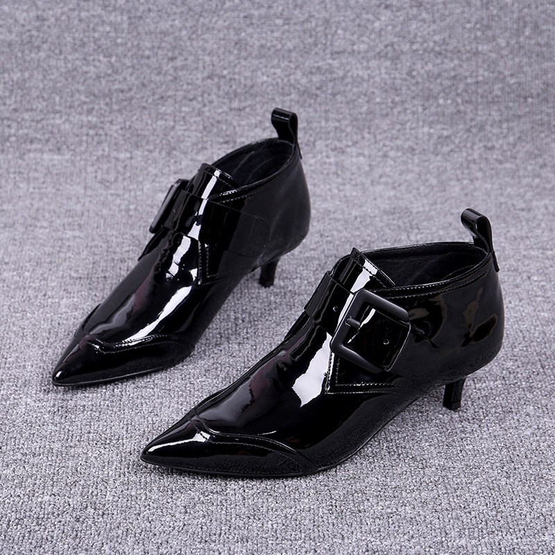 Обувь, весенний ремень, пряжка, бокал на каблуке с заостренным носом, европейский стиль, коллекция 2021