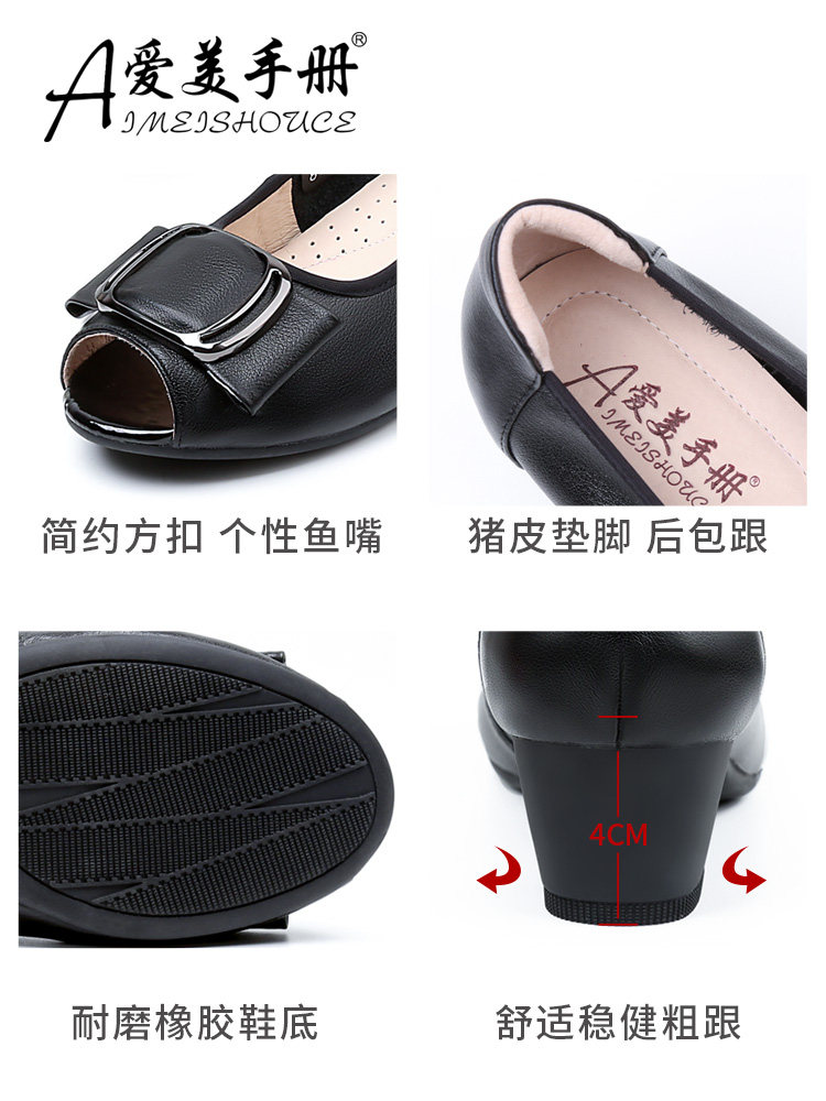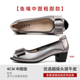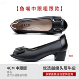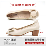 Туфли «рыбий рот» Женская обувь большого размера на среднем каблуке Женская обувь для полных ног Широкие туфли для толстой мамы Лето 2023 Новые туфли из натуральной кожи Обувь Four Seasons
