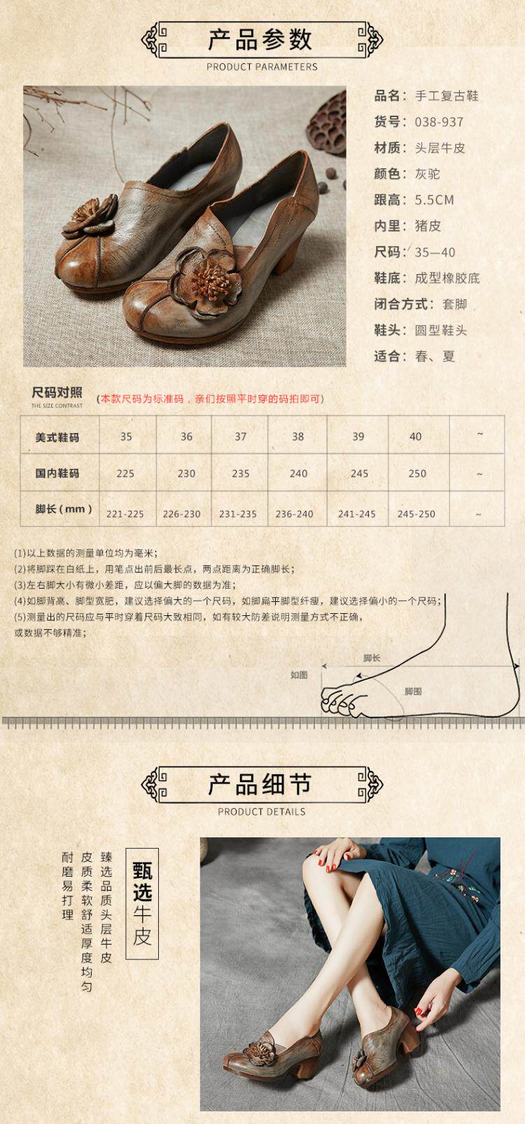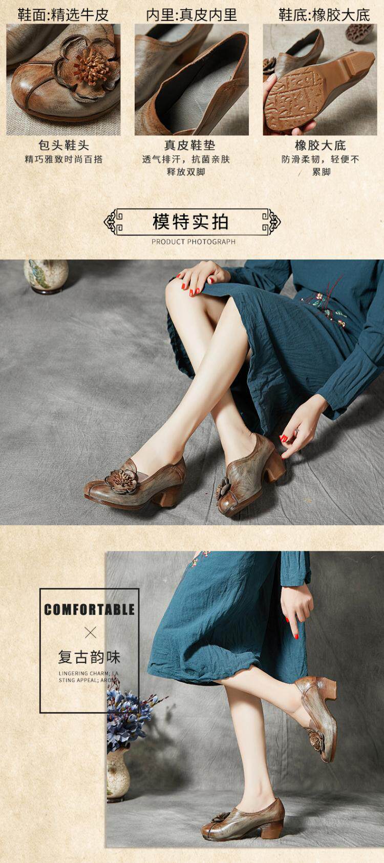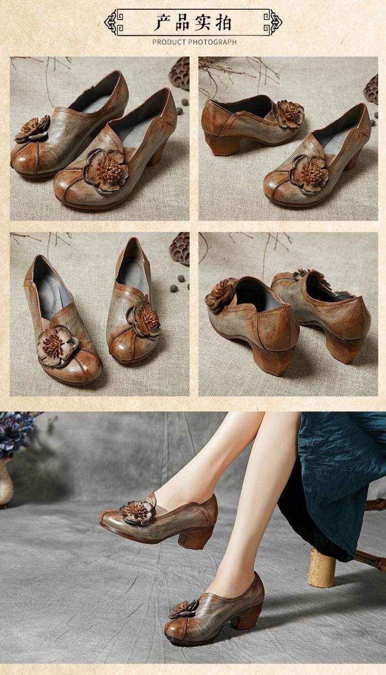 Весенняя оригинальная этническая кожаная обувь, модель весна/осень 2022 года, этнический стиль, из натуральной кожи, в цветочек