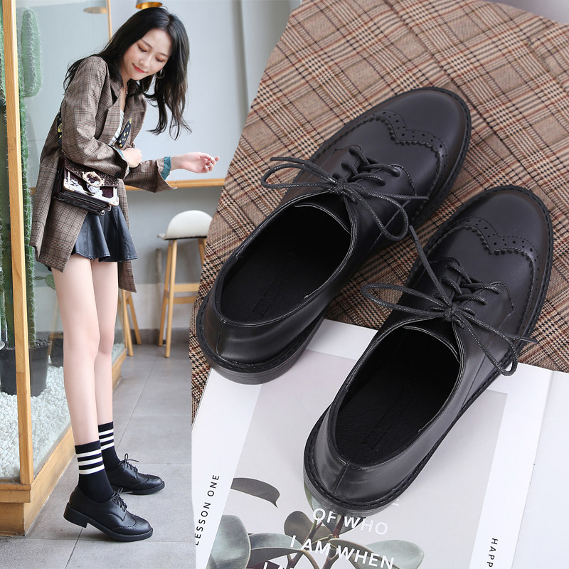 Черные маленькие кожаные туфли для женщин. Женские туфли в британском стиле, толстый каблук, средний каблук, кружево в стиле ретро, универсальные шикарные туфли в студенческом стиле, плюс бархат.
