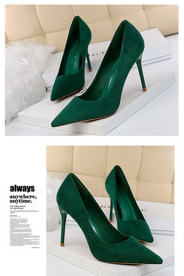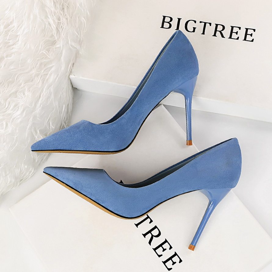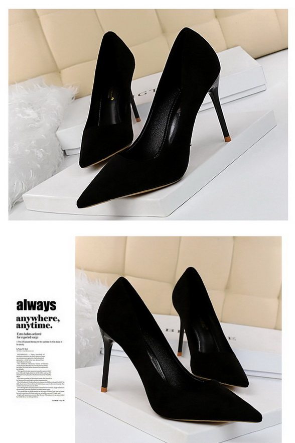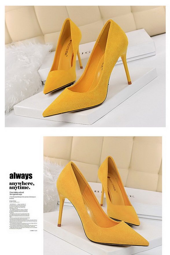 Сексуальные черные замшевые желтые румяна на высоком каблуке с низким вырезом с заостренным носом, универсальная обувь, новая коллекция, популярно в интернете