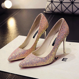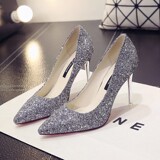 Свадебные туфли со стразами, высокая обувь, серебряные блестки для ногтей с заостренным носом на высоком каблуке, новая коллекция, для подружки невесты, 12см