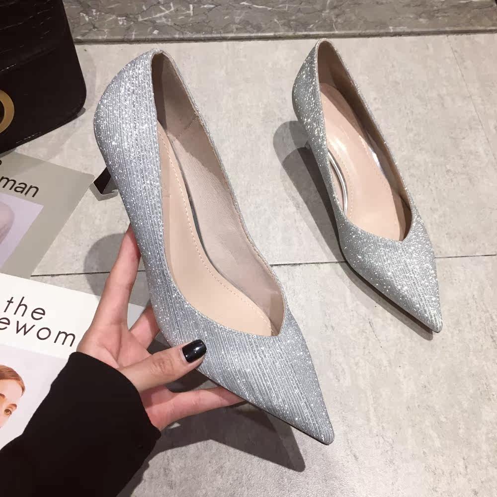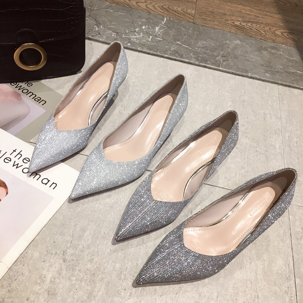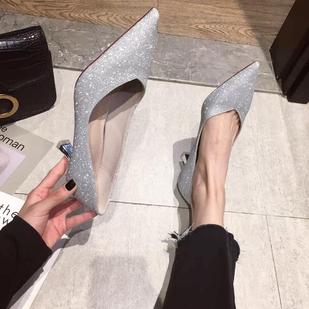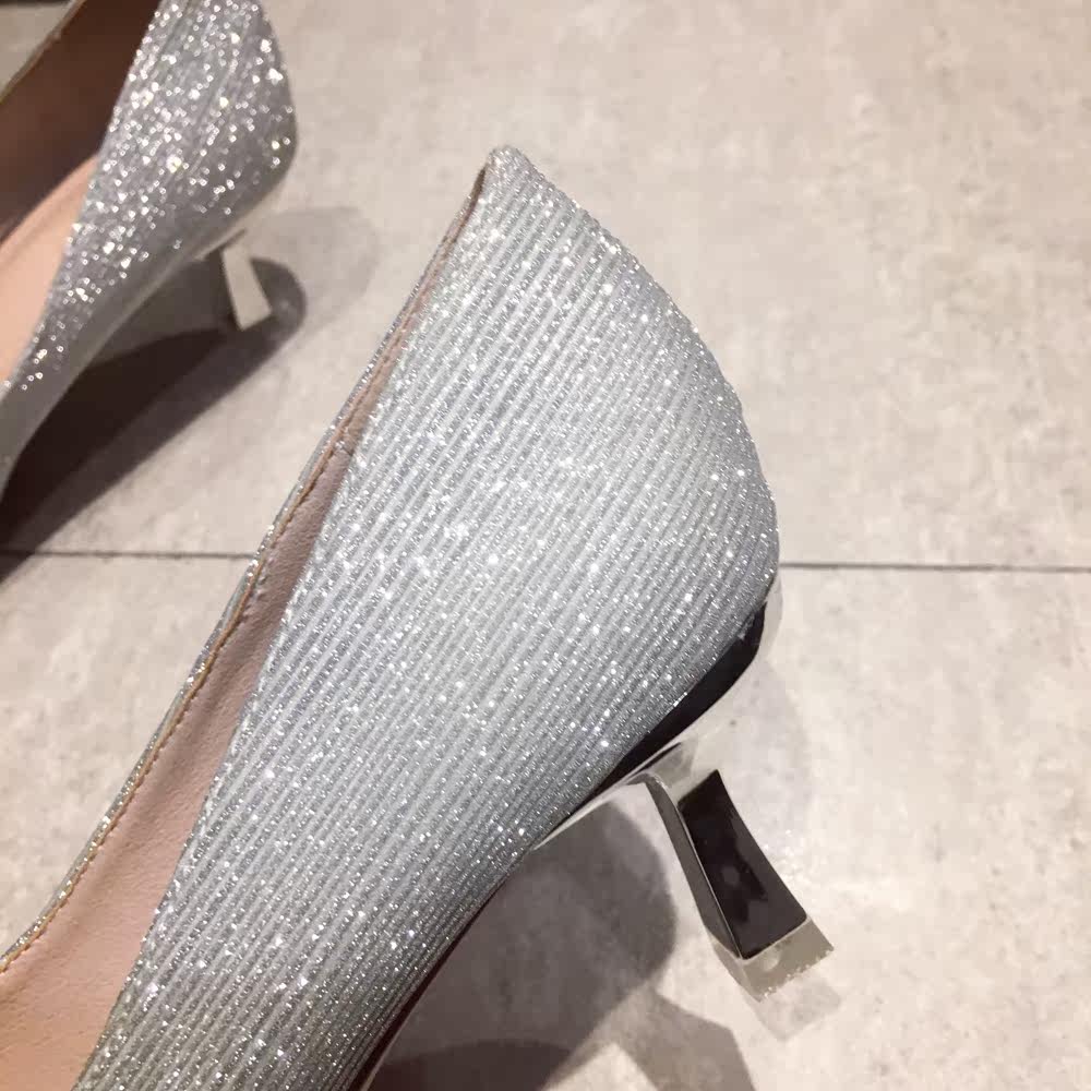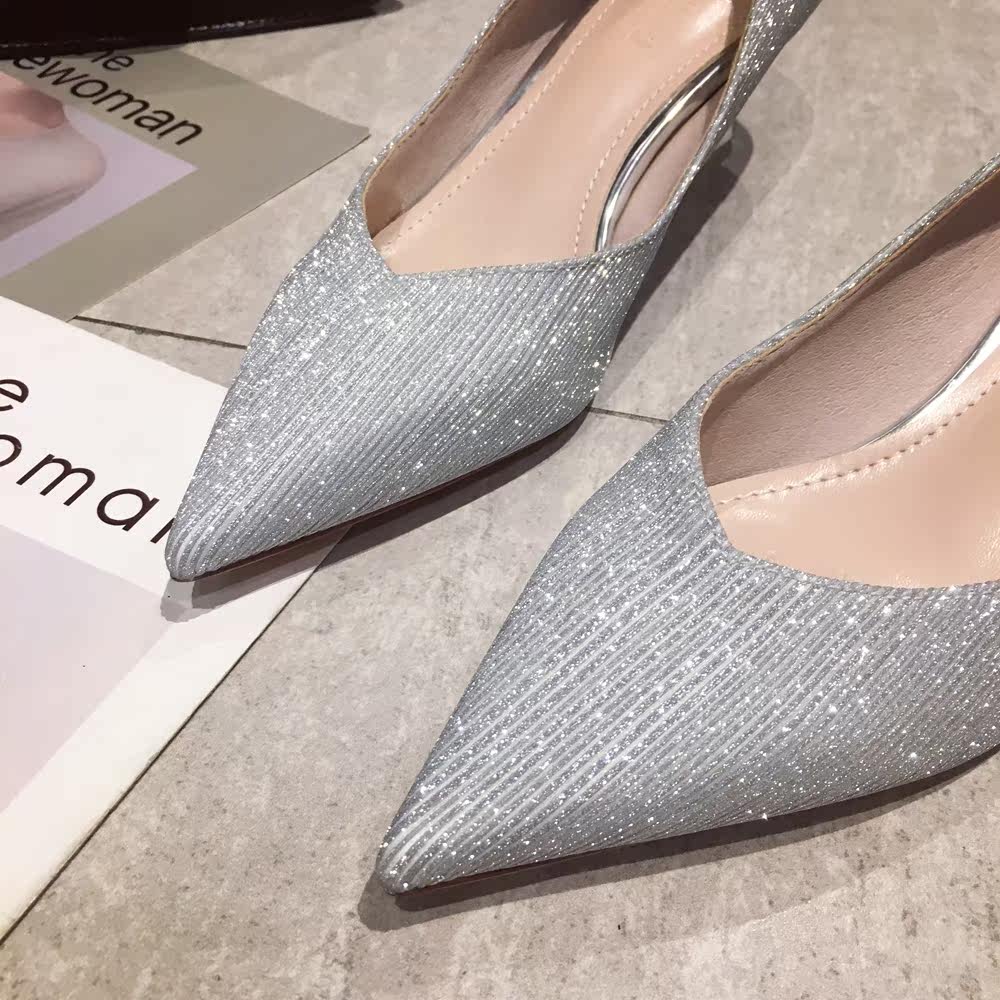 Свадебные туфли, обувь, осенние серебряные блестки для ногтей с заостренным носом для невесты на высоком каблуке, коллекция 2021, для подружки невесты