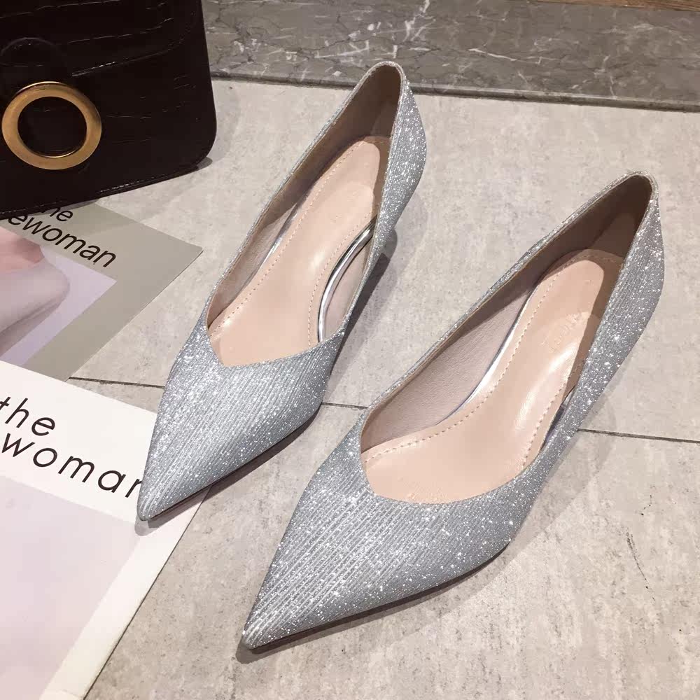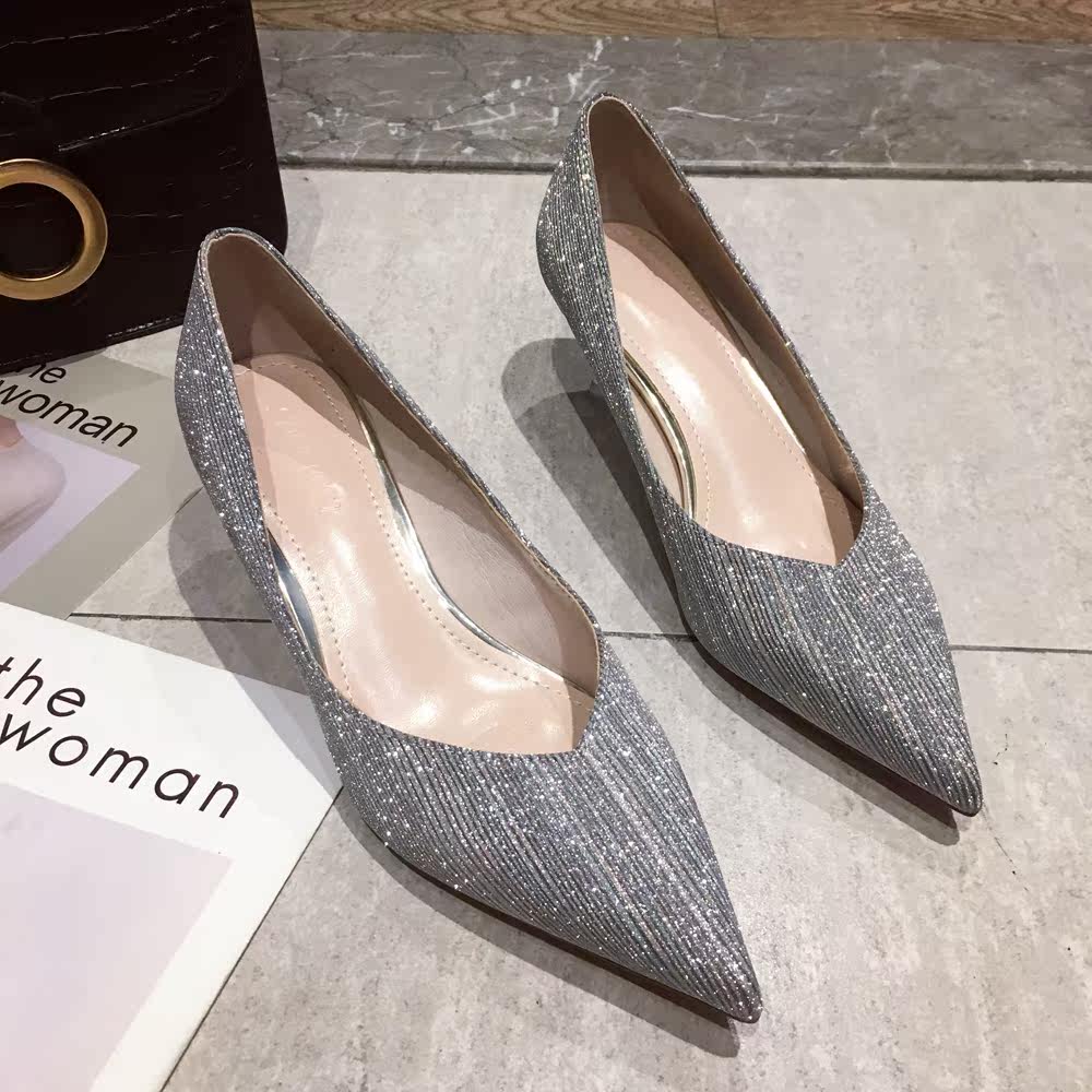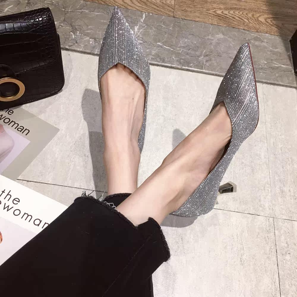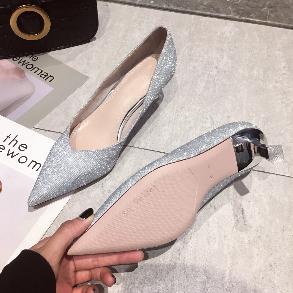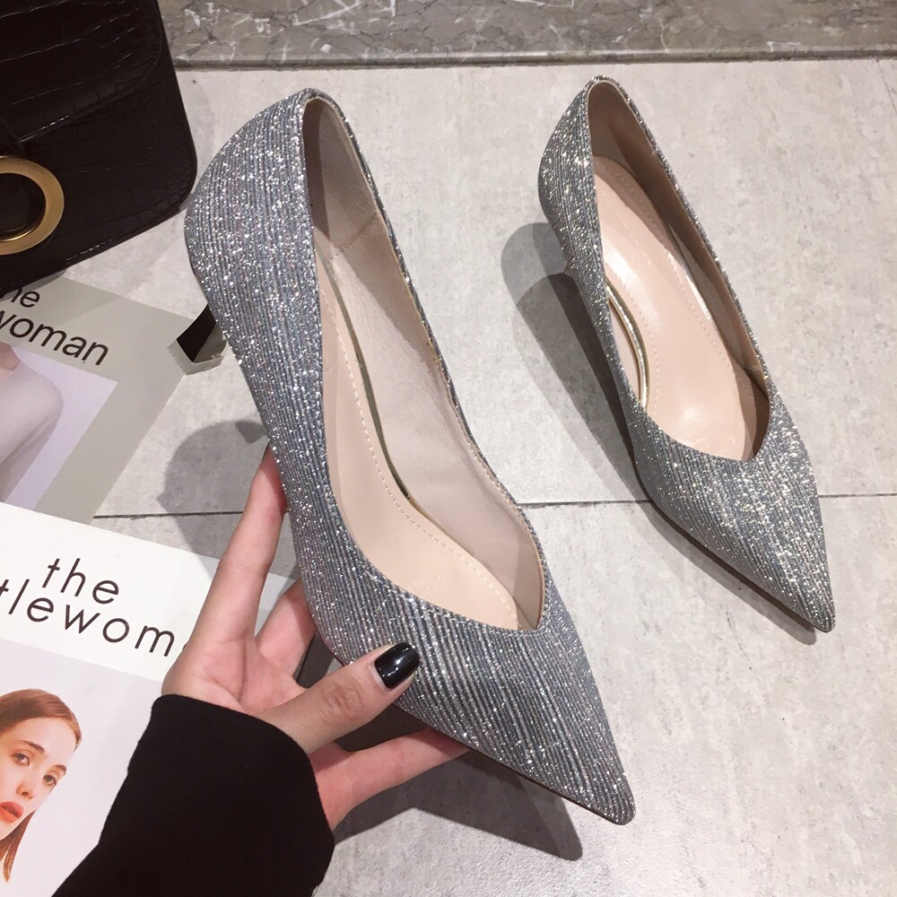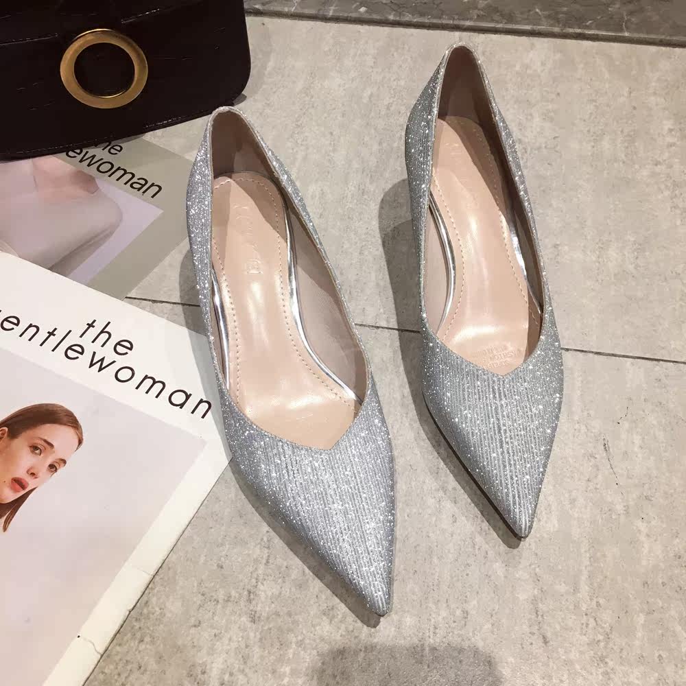 Свадебные туфли, обувь, осенние серебряные блестки для ногтей с заостренным носом для невесты на высоком каблуке, коллекция 2021, для подружки невесты