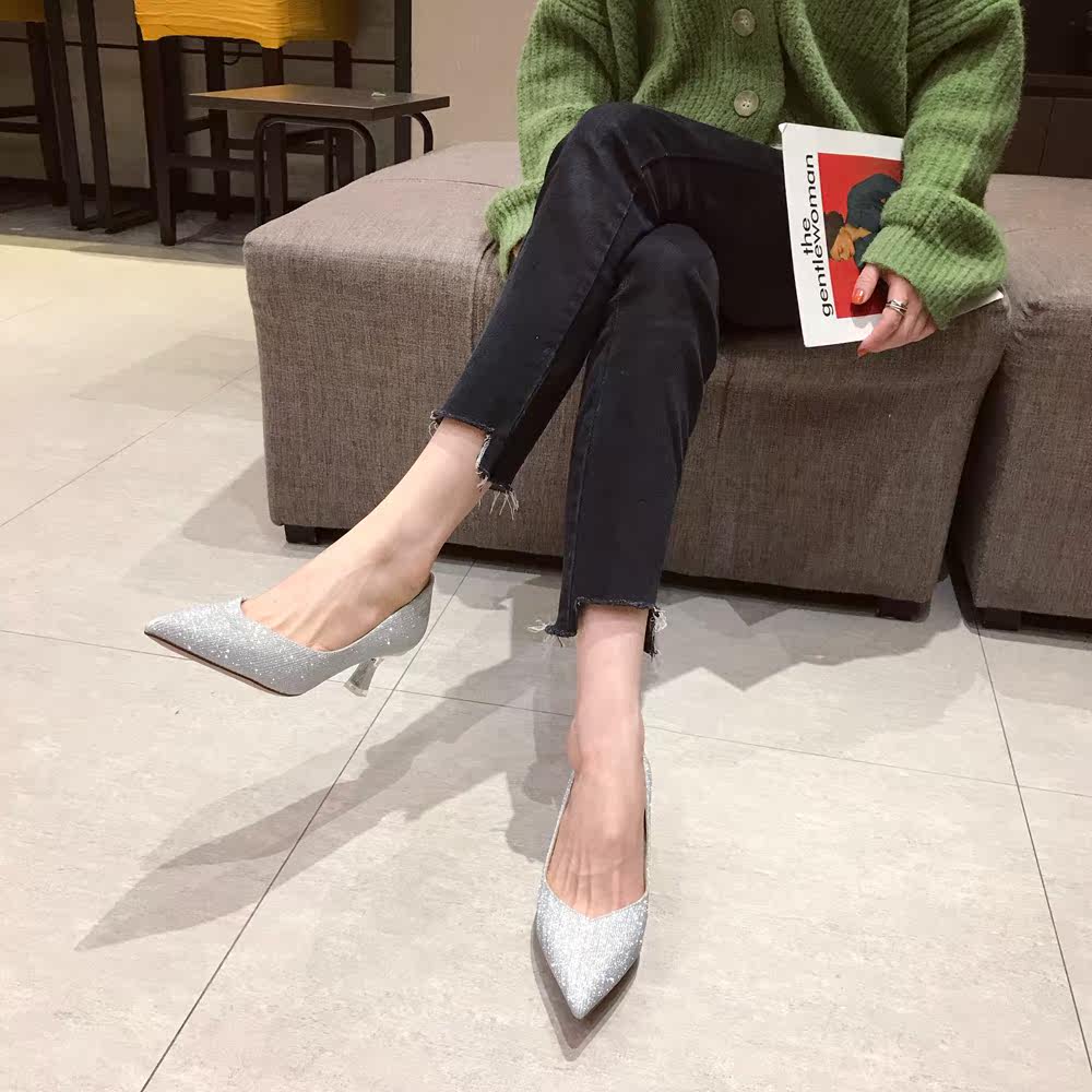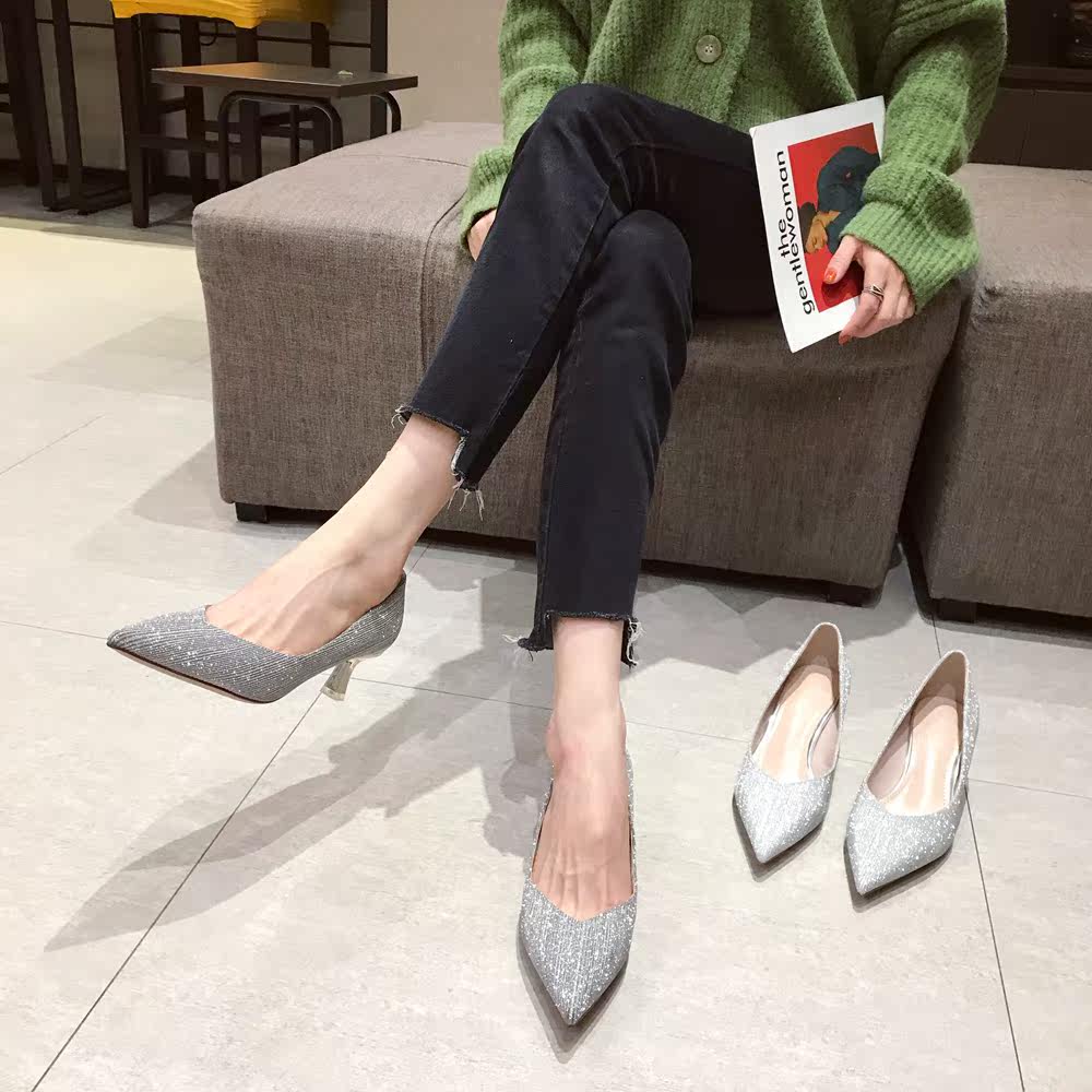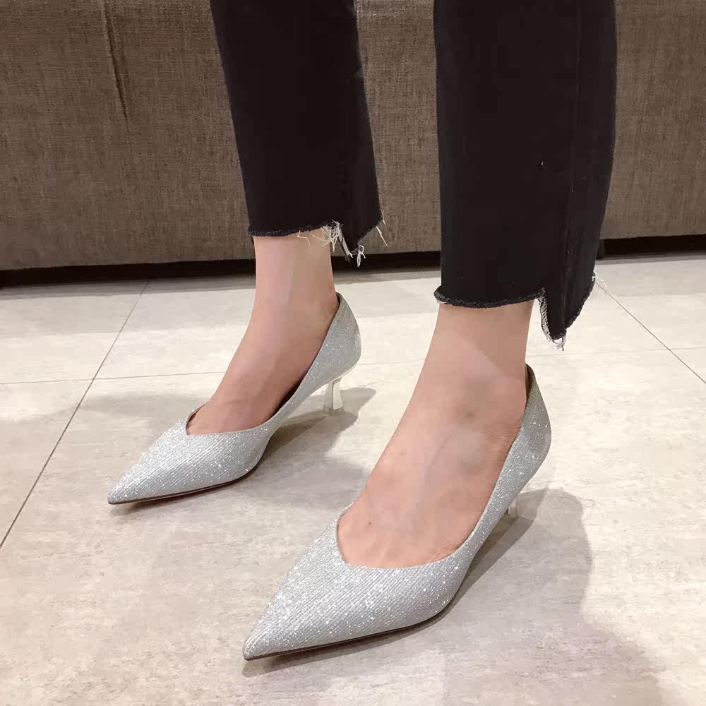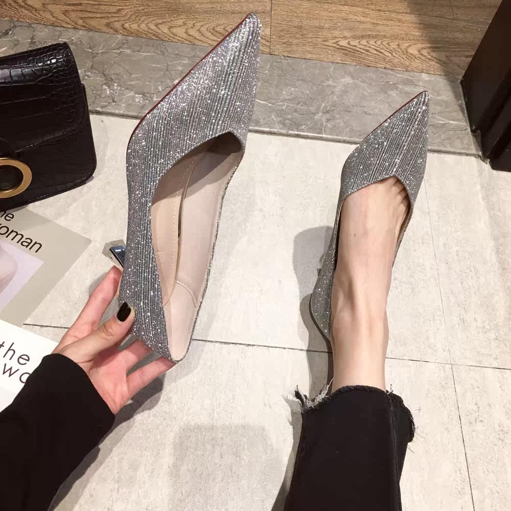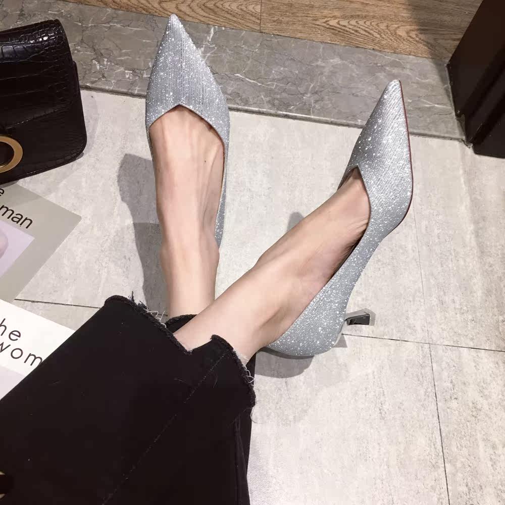Свадебные туфли, обувь, осенние серебряные блестки для ногтей с заостренным носом для невесты на высоком каблуке, коллекция 2021, для подружки невесты