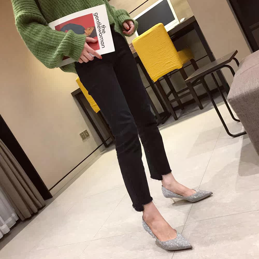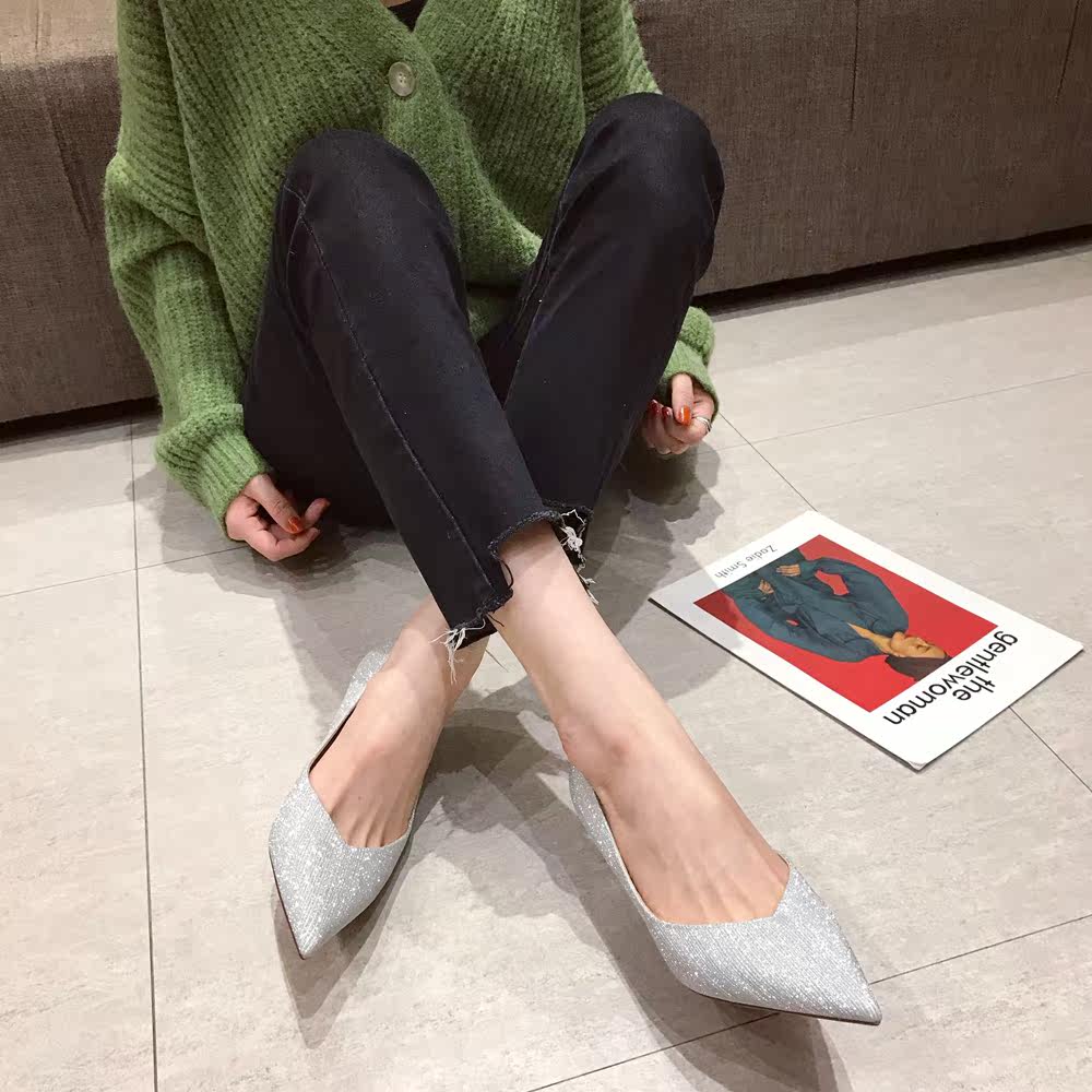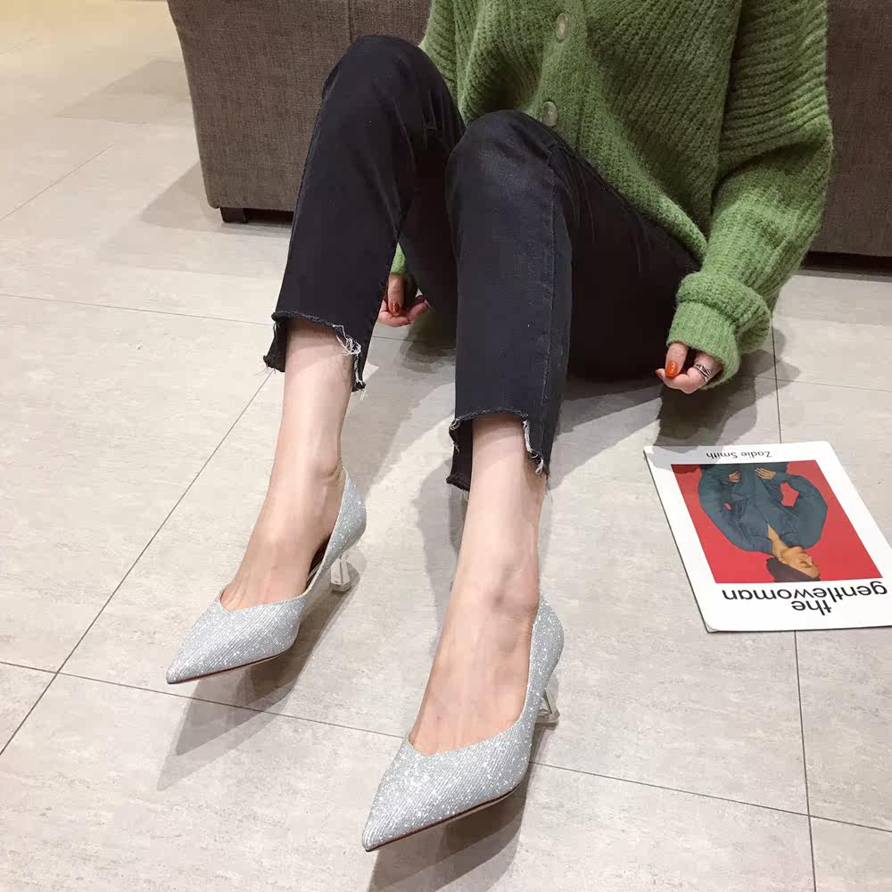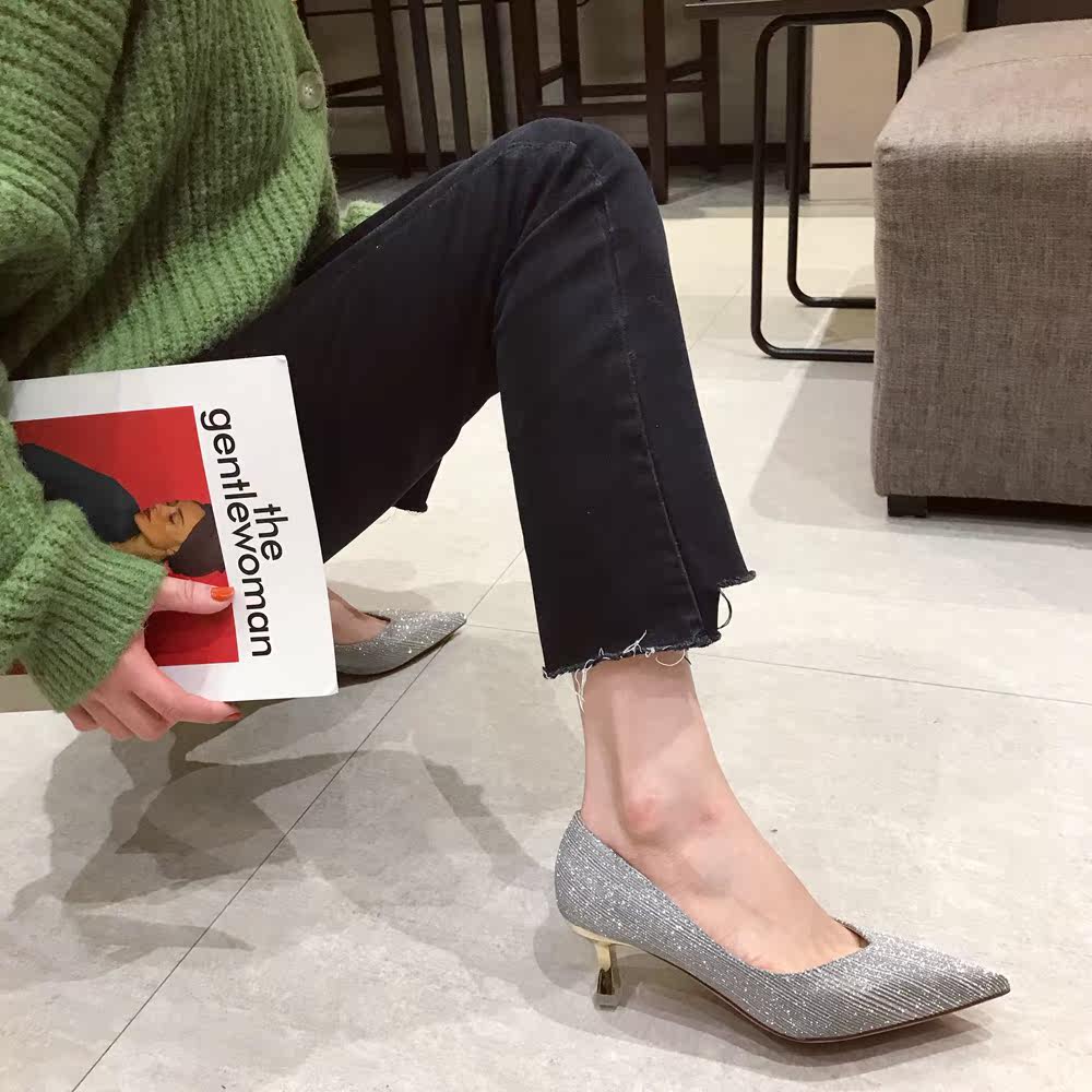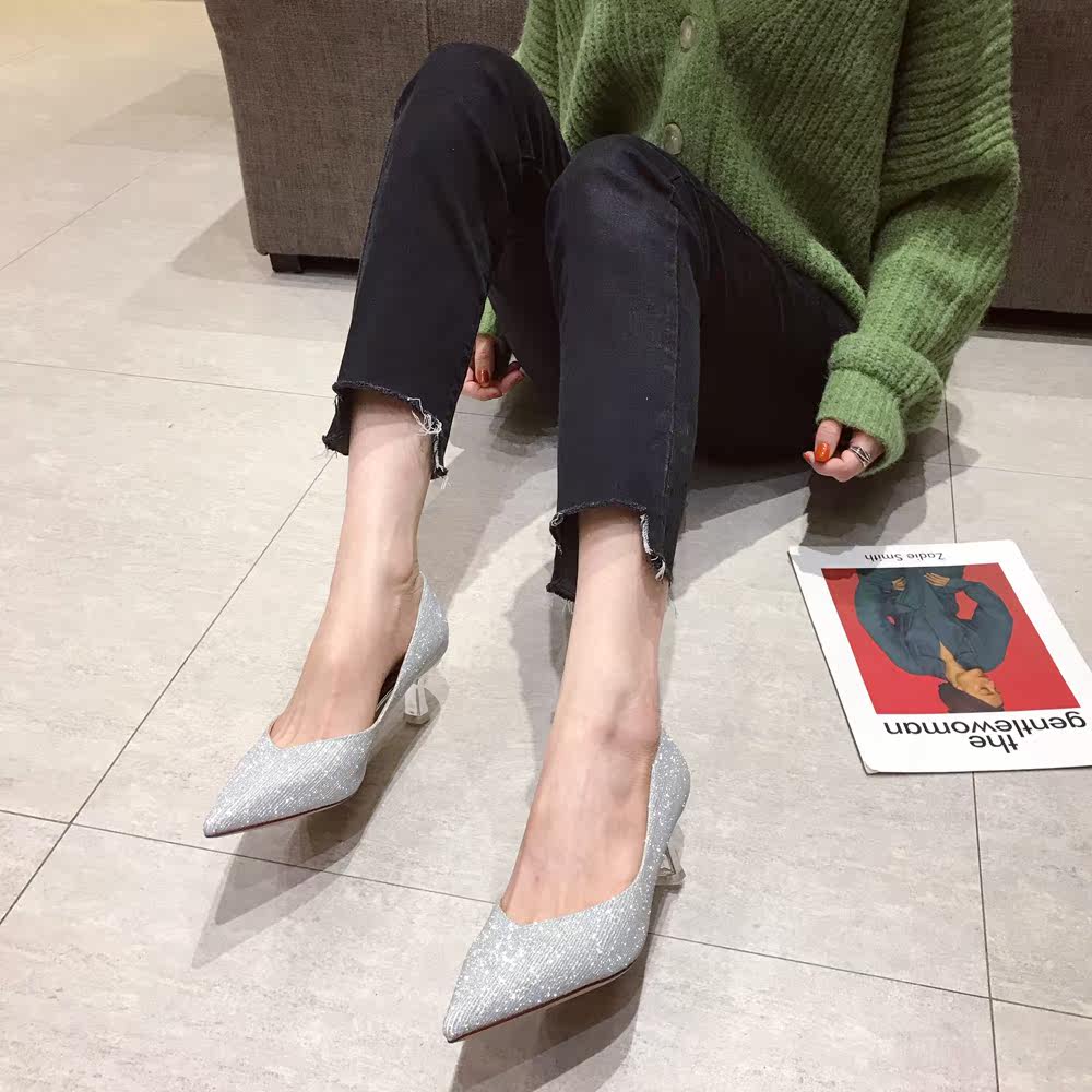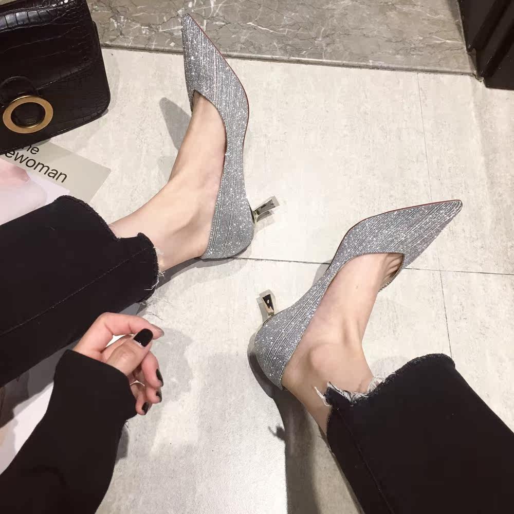 Свадебные туфли, обувь, осенние серебряные блестки для ногтей с заостренным носом для невесты на высоком каблуке, коллекция 2021, для подружки невесты