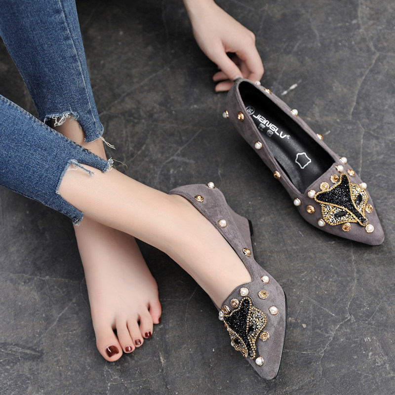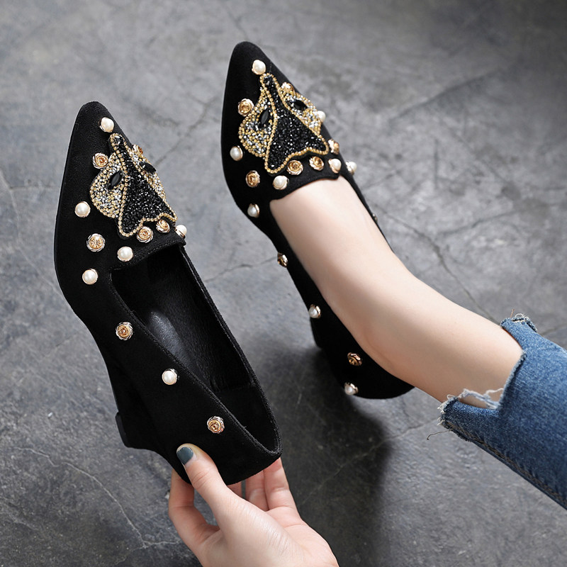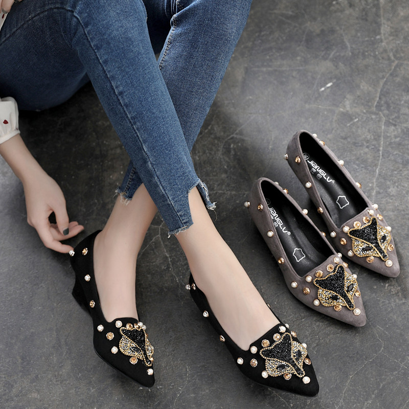 Женская обувь 2021 года, весна и осень, новый стиль с острым жемчугом и стразами