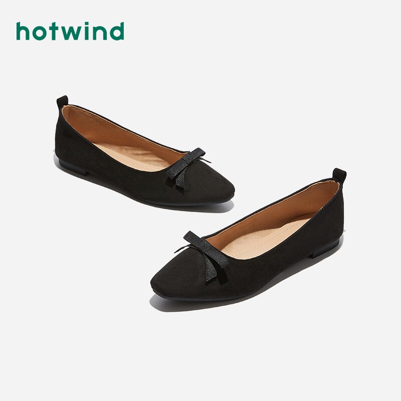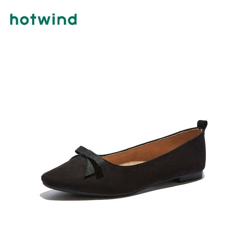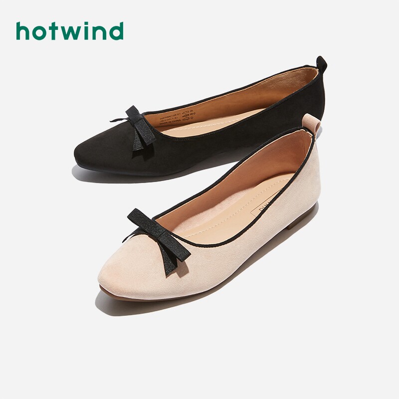 Hotwind/热风 Женские туфли на плоской подошве с квадратным носком и бантом, весенняя новинка 2020 года, универсальная повседневная женская обувь на плоской подошве с квадратным носком и бантом