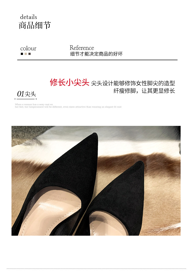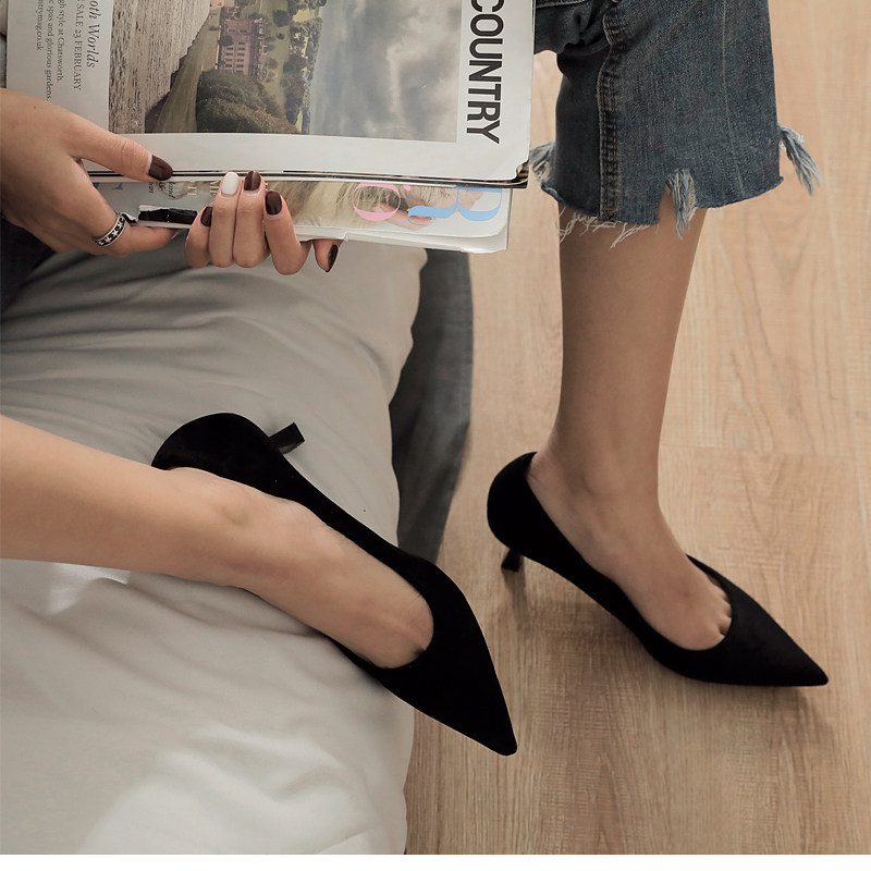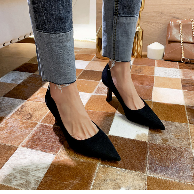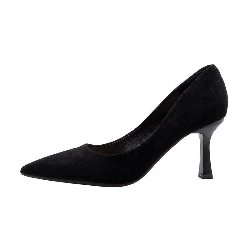 Весенняя универсальная рабочая черная обувь с заостренным носом на высоком каблуке, французский стиль