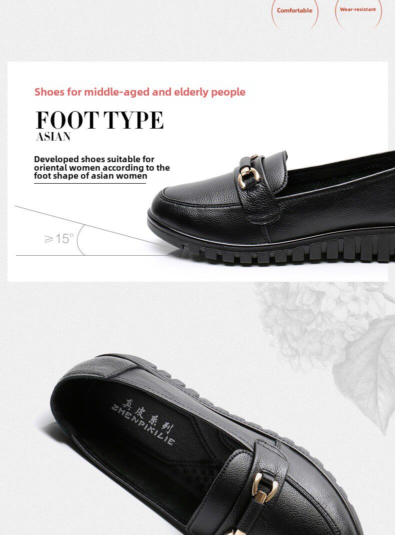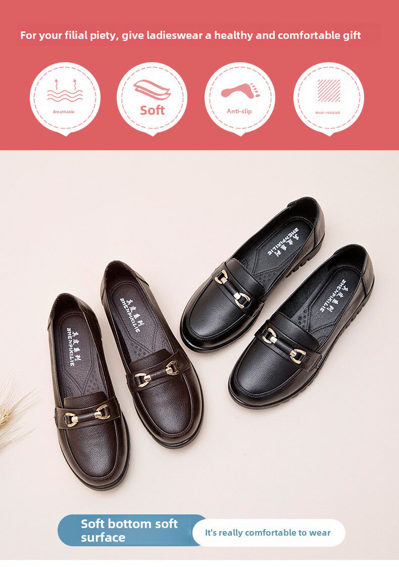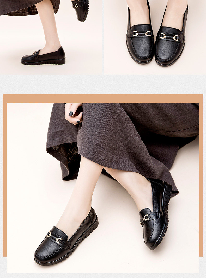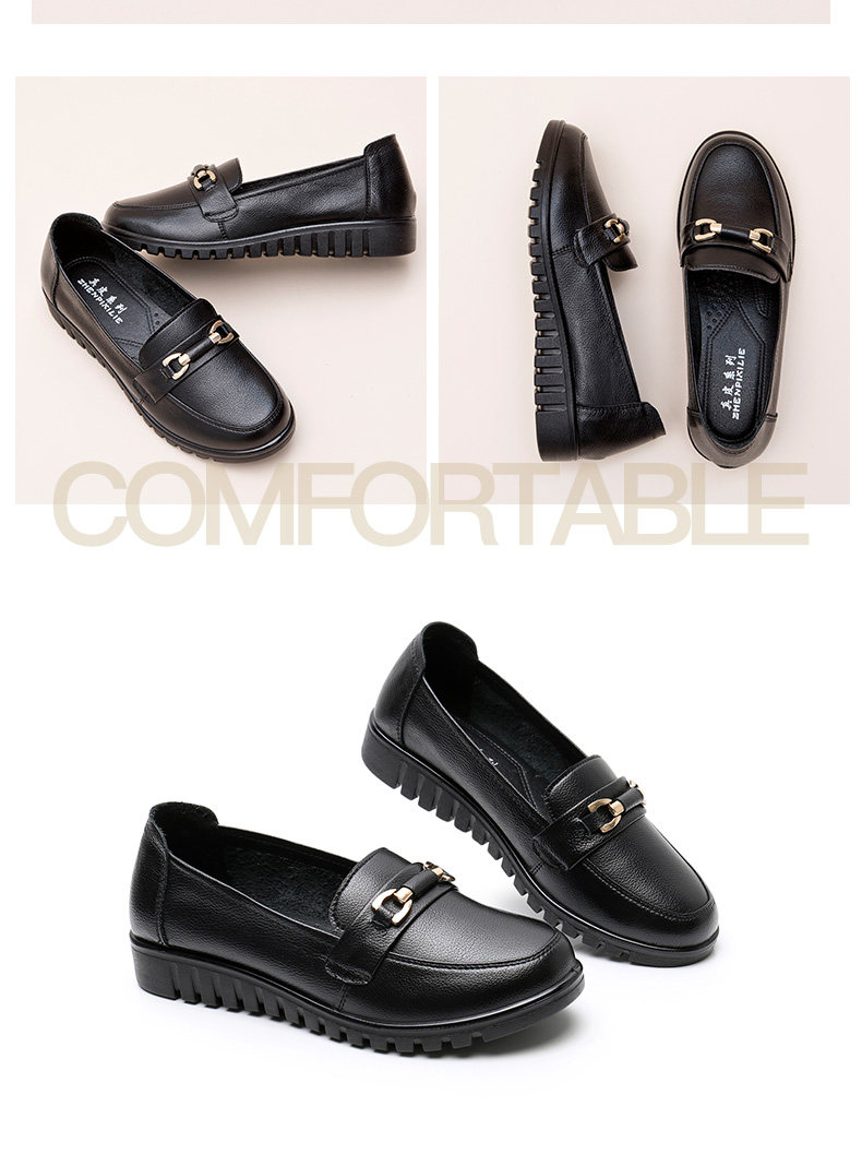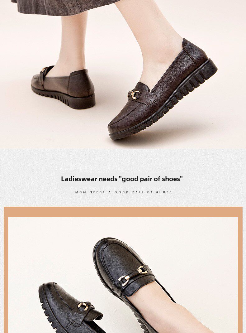 春秋母鞋真皮软底鞋舒适防滑中老年女鞋中年平底鞋工作皮鞋