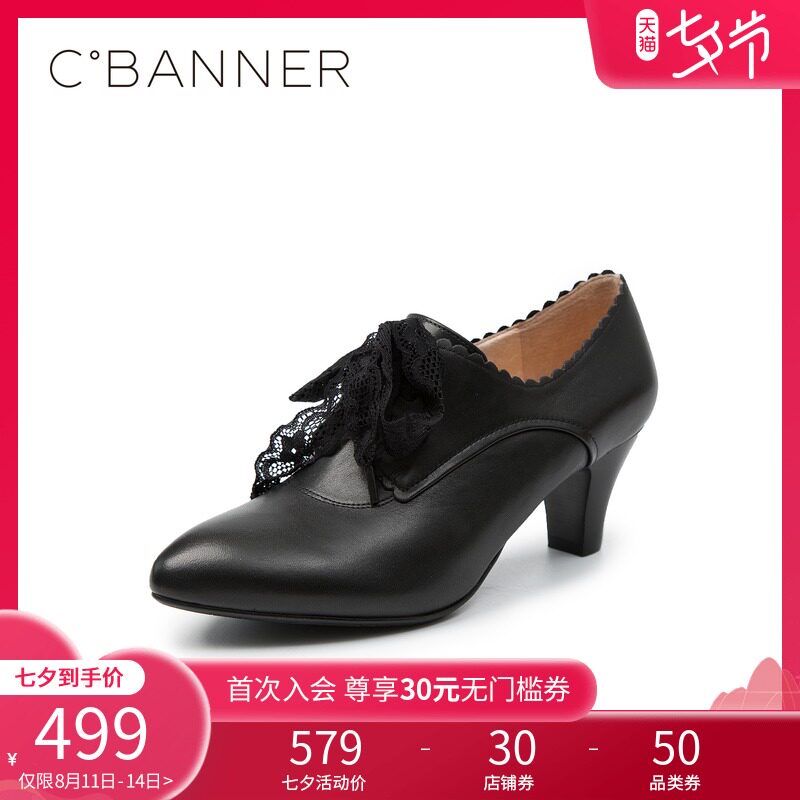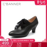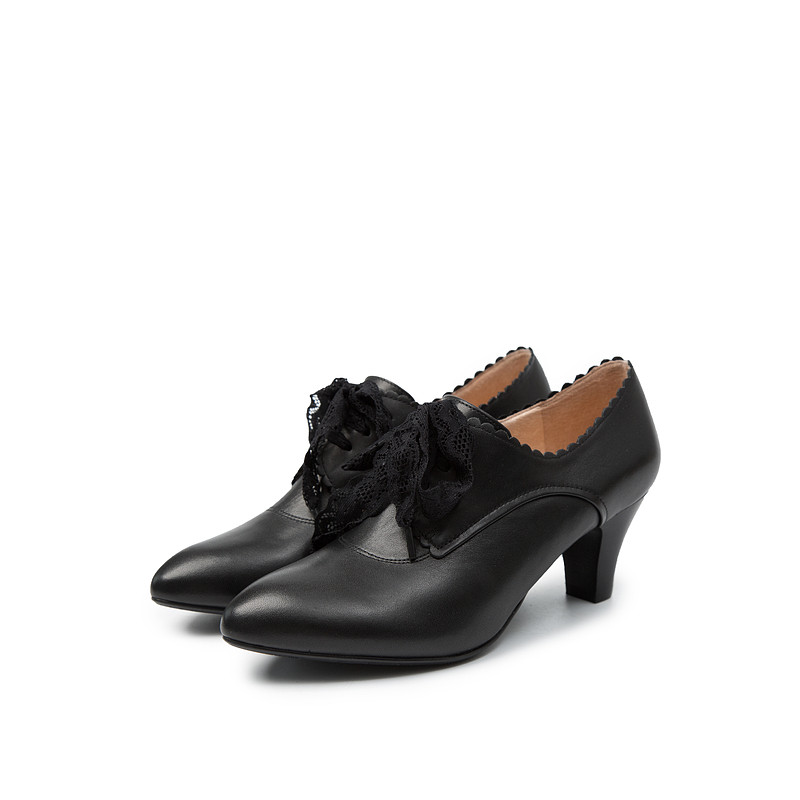 Тысячи женских обуви Baidu 2020 весна и осенью Новый французский толстый каблук средний каблук черный ретро