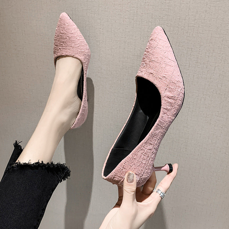 2020 весна и осень, новые интернет-знаменитости с острым носком на тонком каблуке, черные профессиональные туфли на высоком каблуке «кошачий каблук» для девочек, универсальные французские студенческие туфли