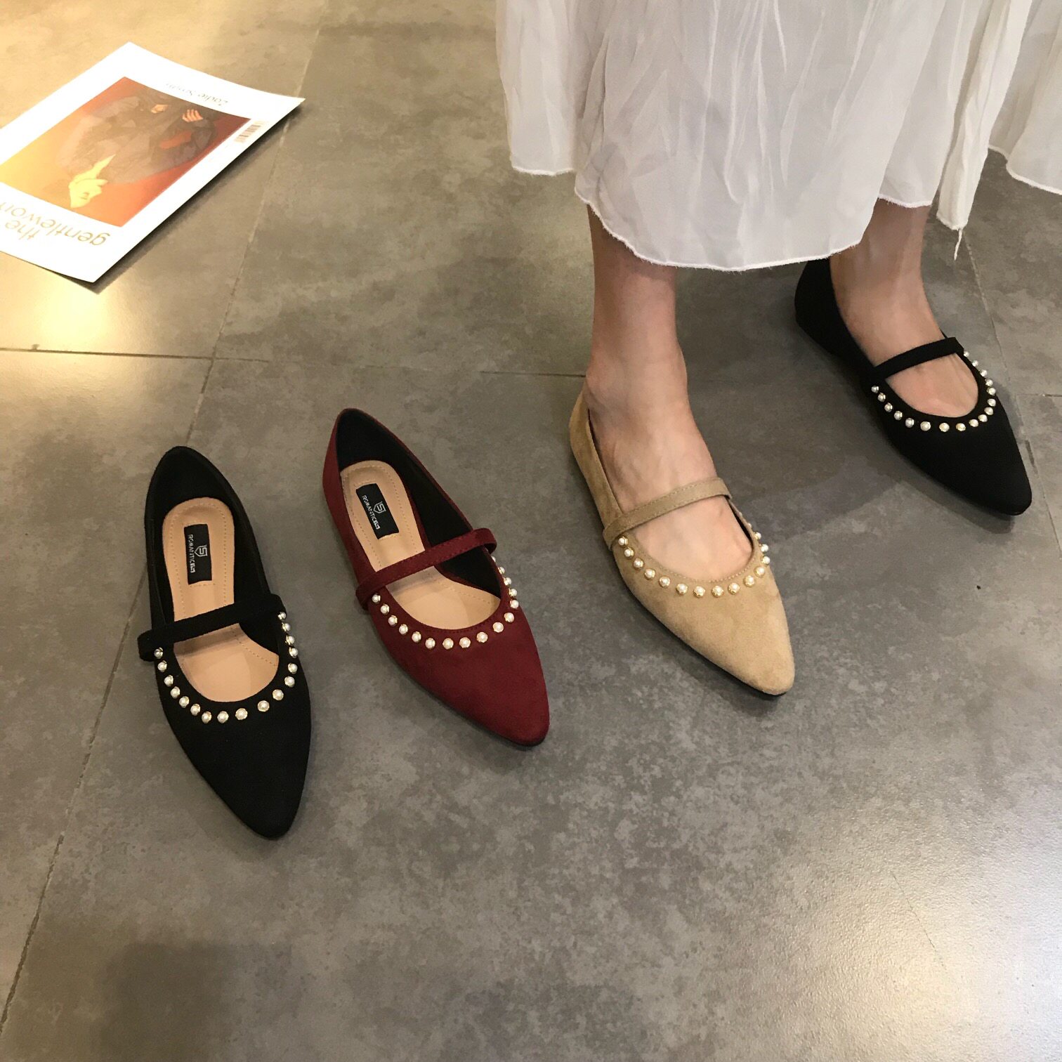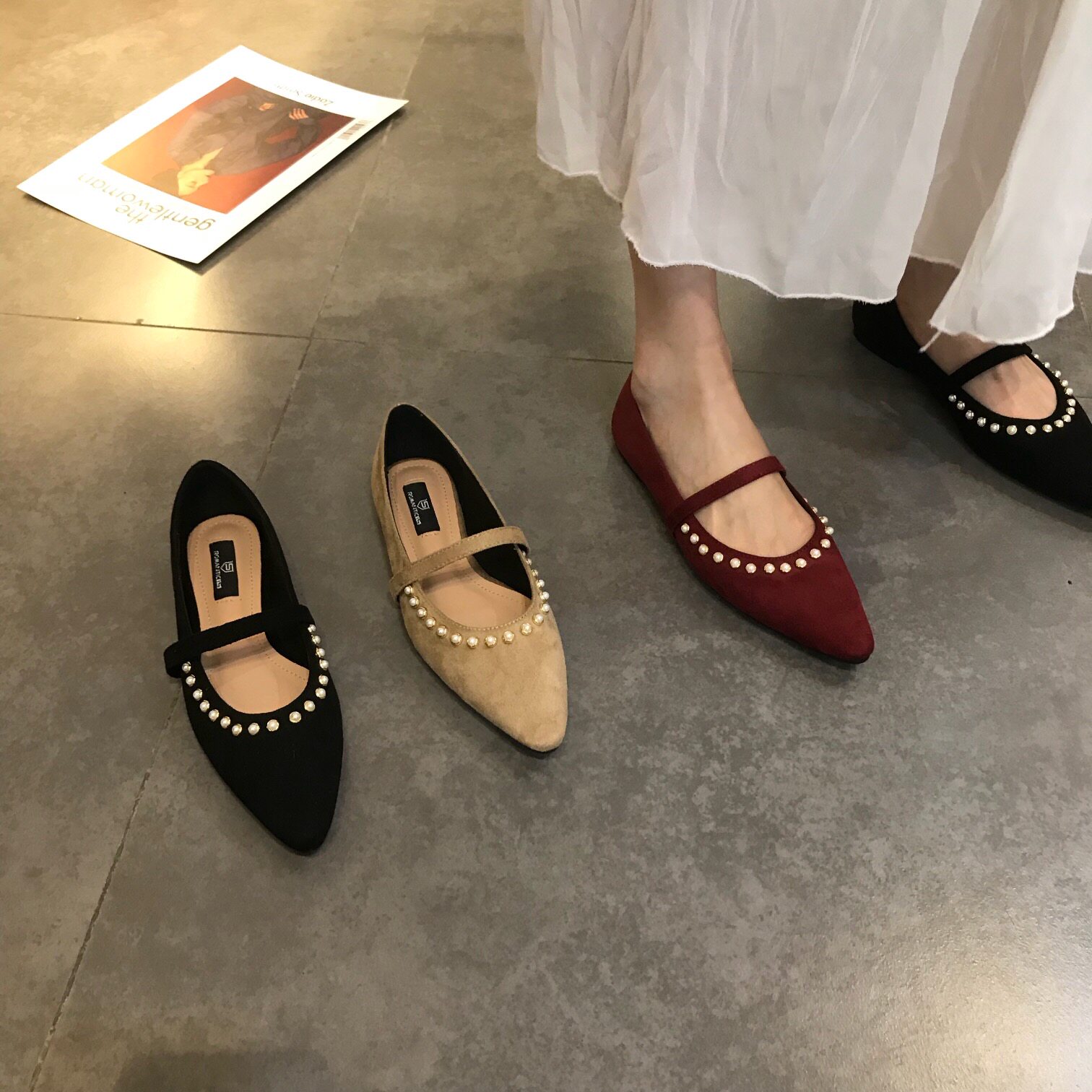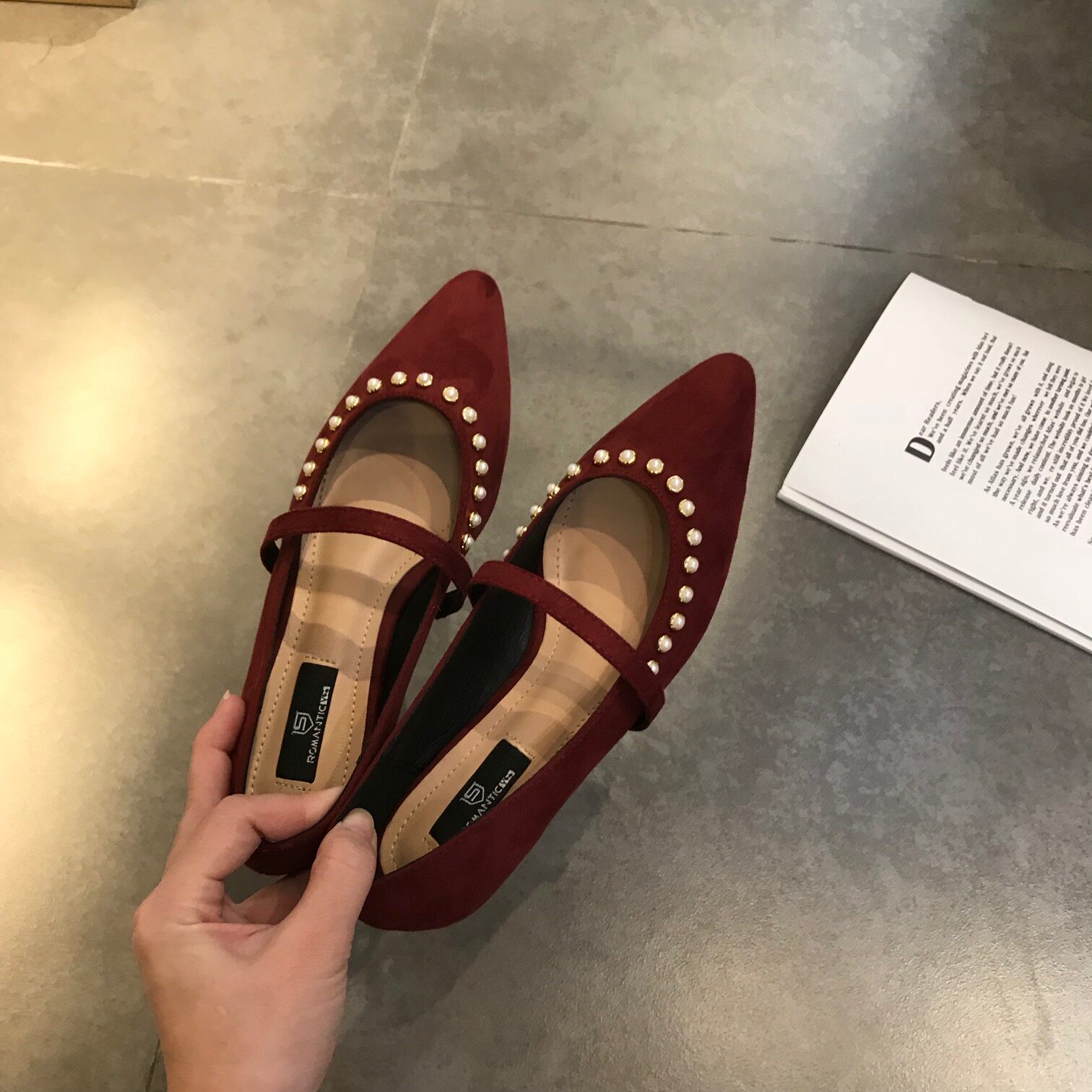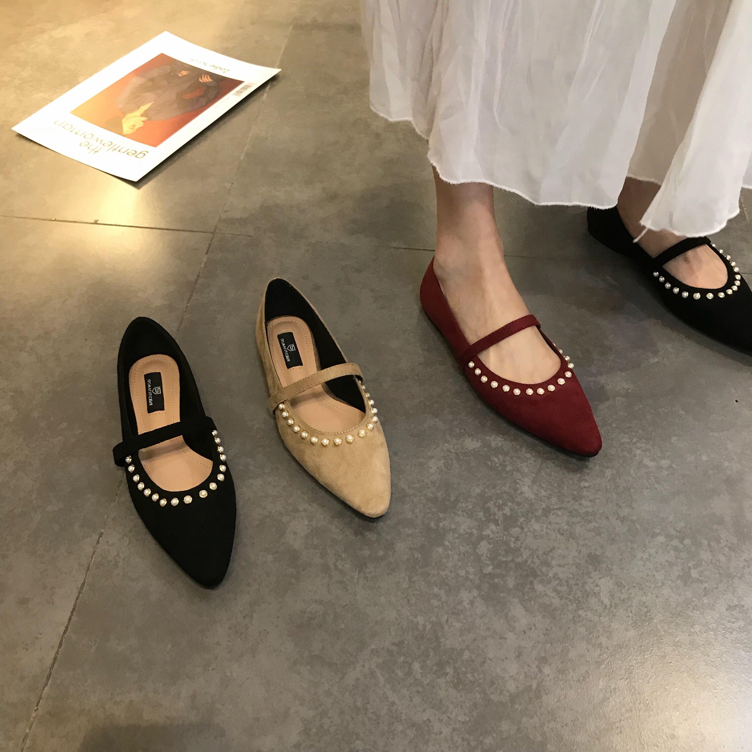 Рекомендуемая самостоятельная темпераментная жемчужная пояс одиночная обувь ретро красная красавица Низкая обувь Light Women's Shoes