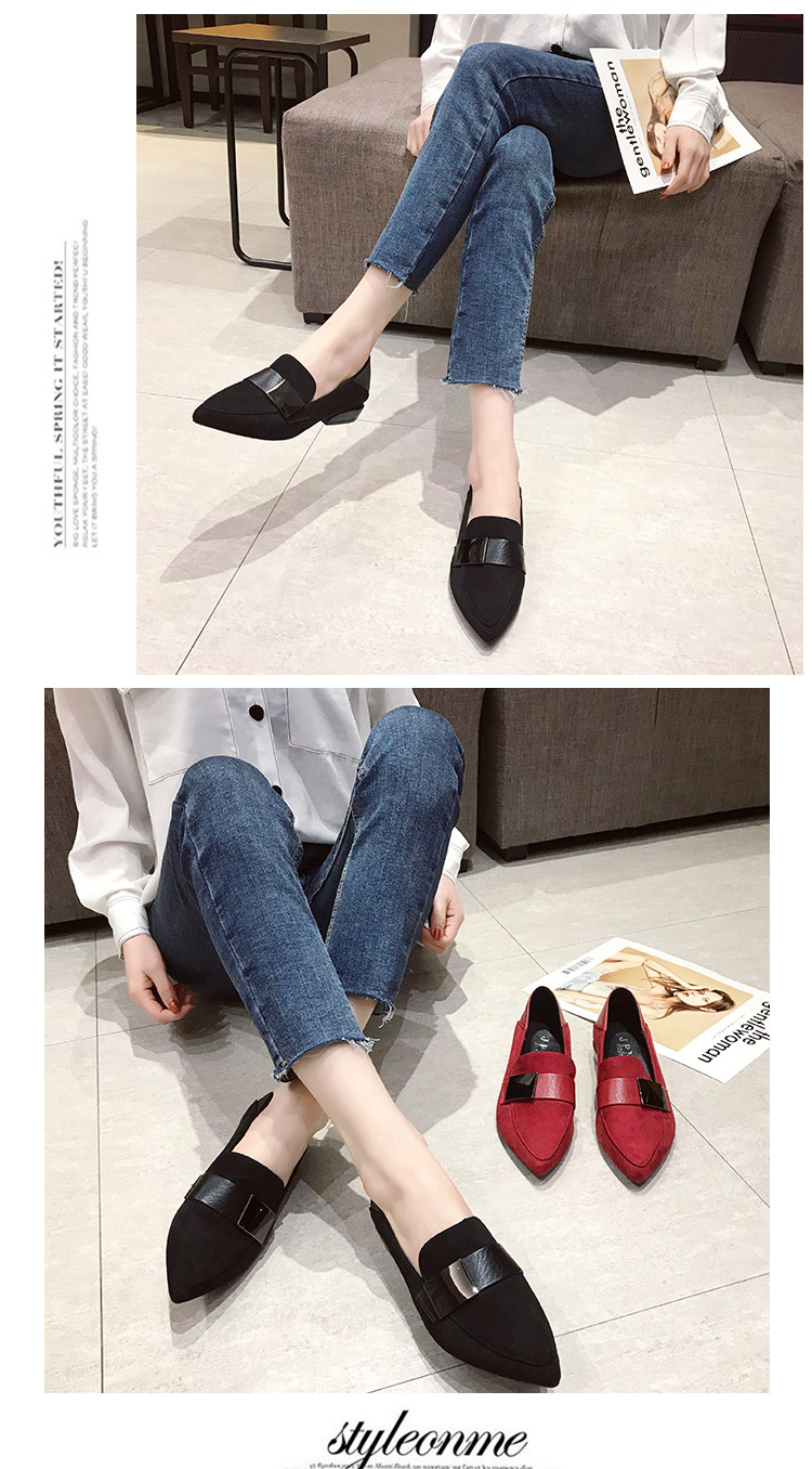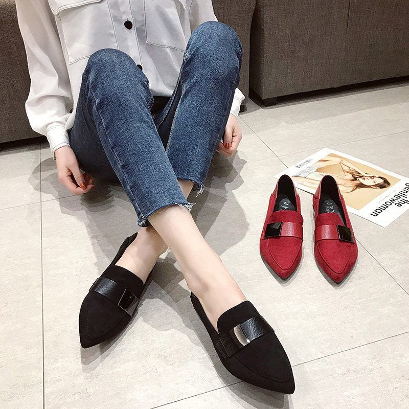 2020 весна новая заостренная металлическая пряжка глубокая рот профессиональная рабочая обувь Lazy One Pedal и толстая каблука в повседневных одиночных туфлях