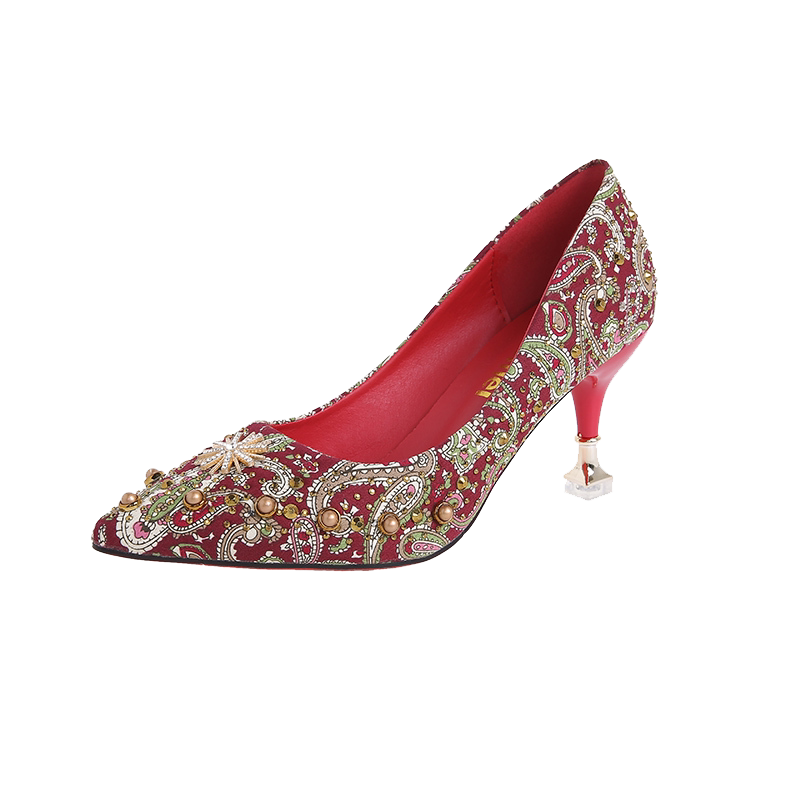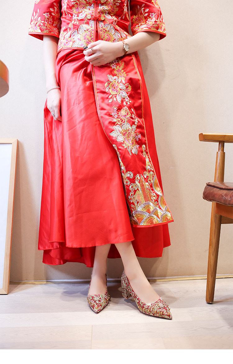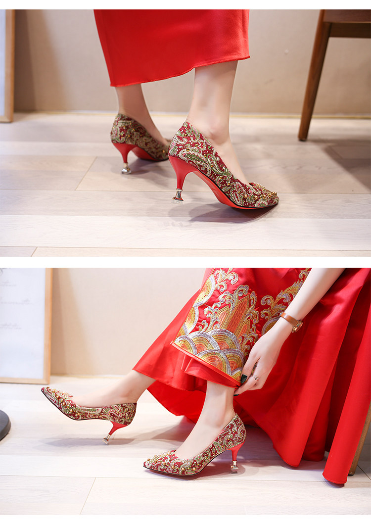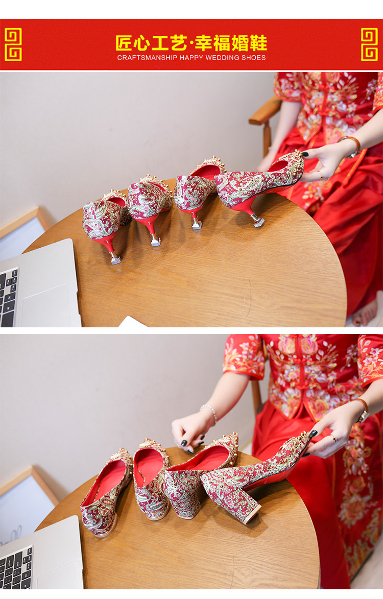 Обувь, осенние красные свадебные туфли для невесты на высоком каблуке, китайский стиль